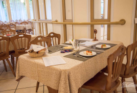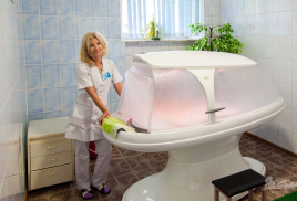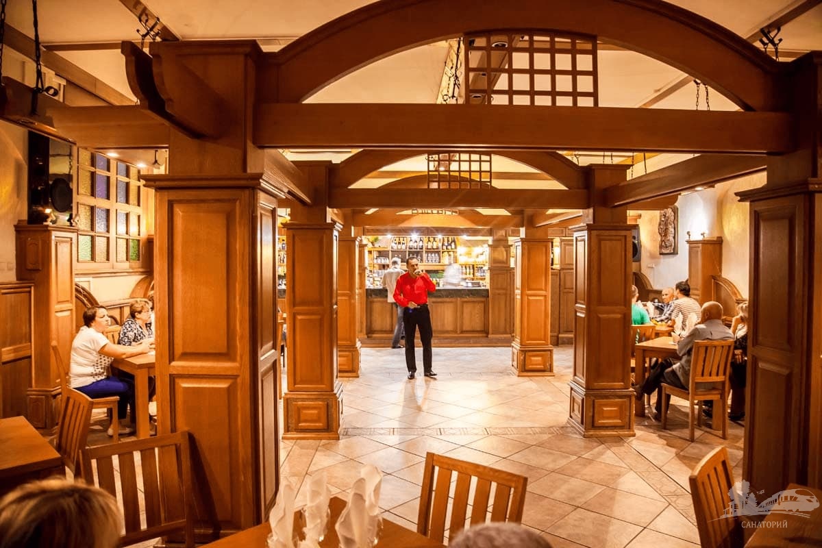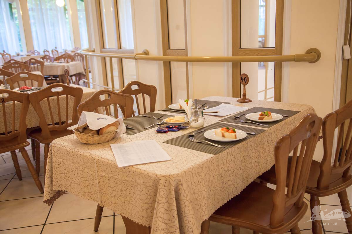 - 4-разовое по заказному меню (с 2-го дня) с элементами шведского стола - салатбар. Питание организовано в двух обеденных залах на 230 мест на втором этаже в лечебно-оздоровительном корпусе и в административно-лечебном корпусе.