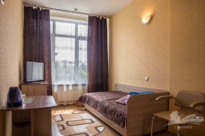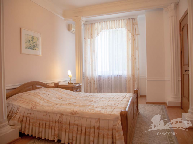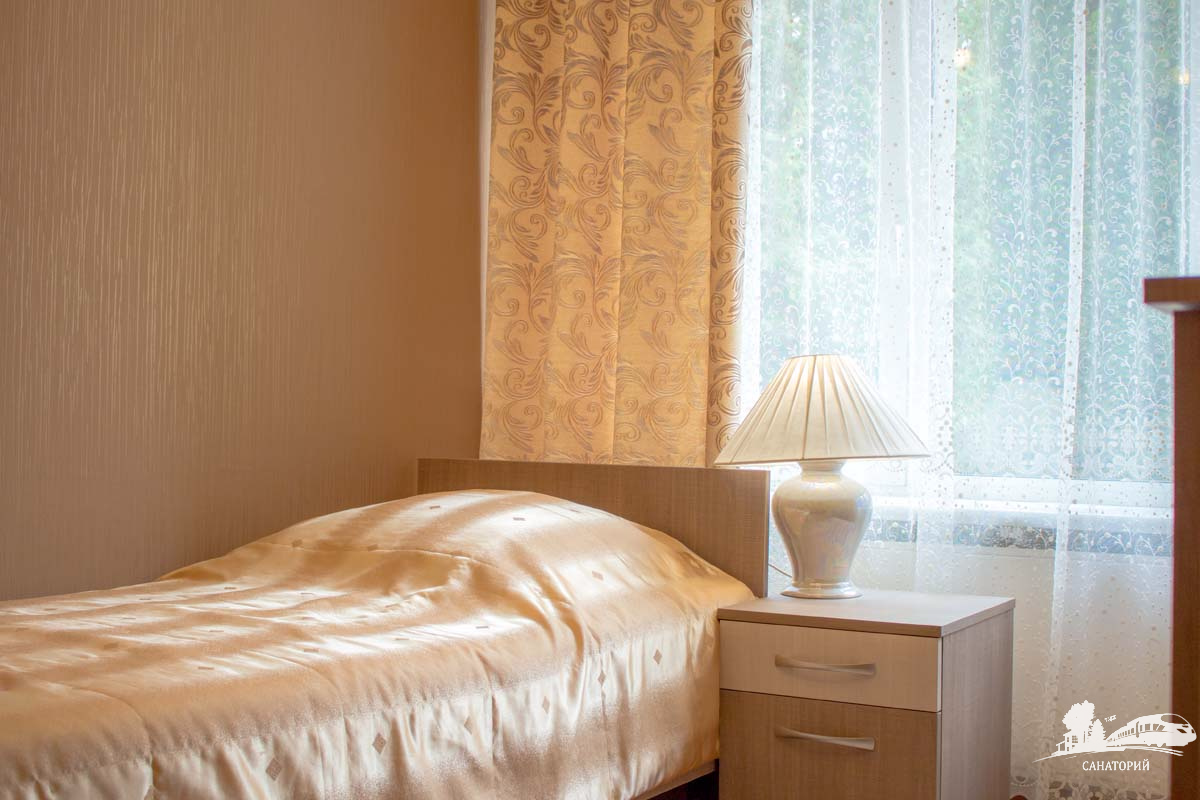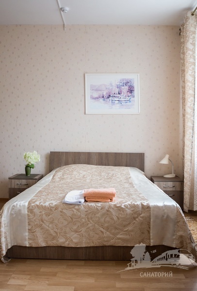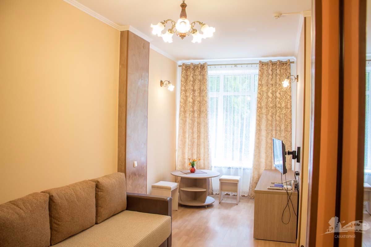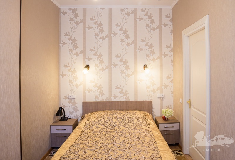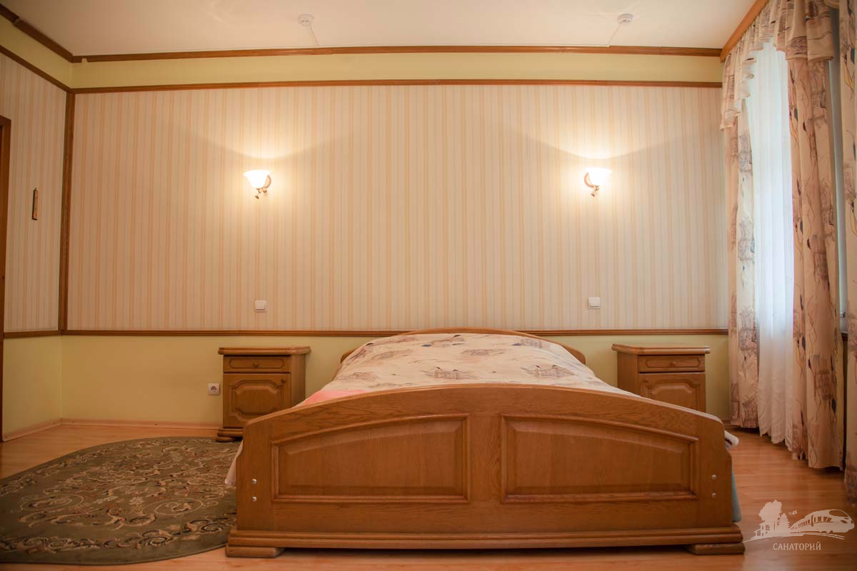 - 1-но местный 2-х комнатный Люкс сингл высшей категории в корпусе №2. В номере: туалет, умывальник, биде, ванна, холодильник, электрочайник, микроволновая печь, утюг, телевизор, телефон, wi-fi, две жилые комнаты-комната для отдыха/работы и спальня с двуспальной кроватью.