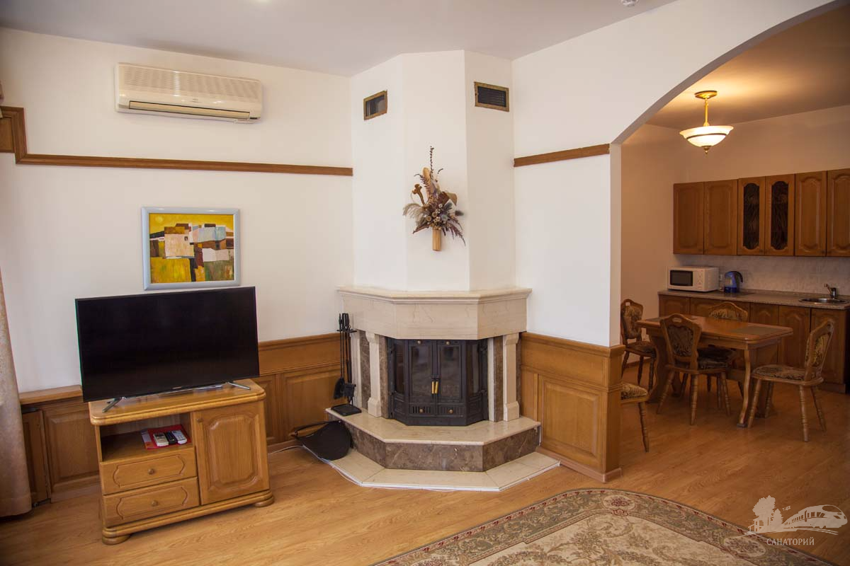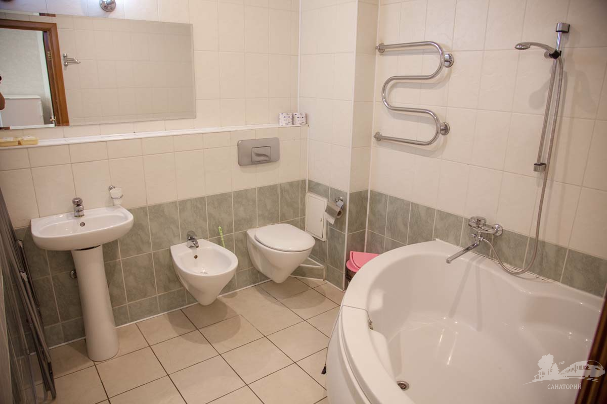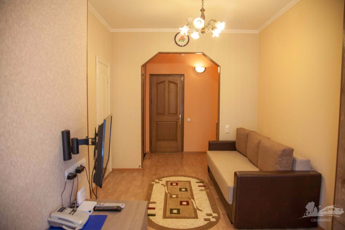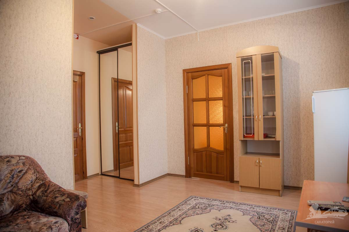 - 2-х местный 2-х комнатный Люкс дабл высшей категории в корпусе №1. В номере: туалет, умывальник, биде, ванна, холодильник, электрочайник, микроволновая печь, утюг, телевизор, телефон, wi-fi, две жилые комнаты-комната для отдыха/работы и спальня с двуспальной кроватью.