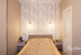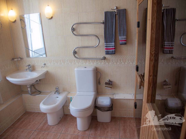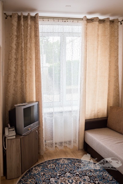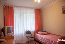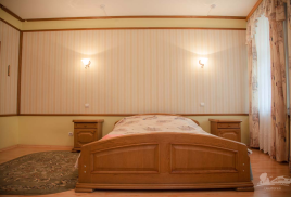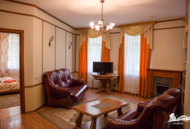 - 1-но местный 3-х комнатный Сюит высшей категории в корпусе №2. В номере: туалет, умывальник, биде, душ, холодильник, электрочайник, микроволновая печь, утюг, телевизор, телефон, wi-fi, три жилые комнаты-комната для отдыха и работы, гостиная/столовая с кухонным оборудованием, спальня с нестандартной широкой двуспальной кроватью (180x200см).
