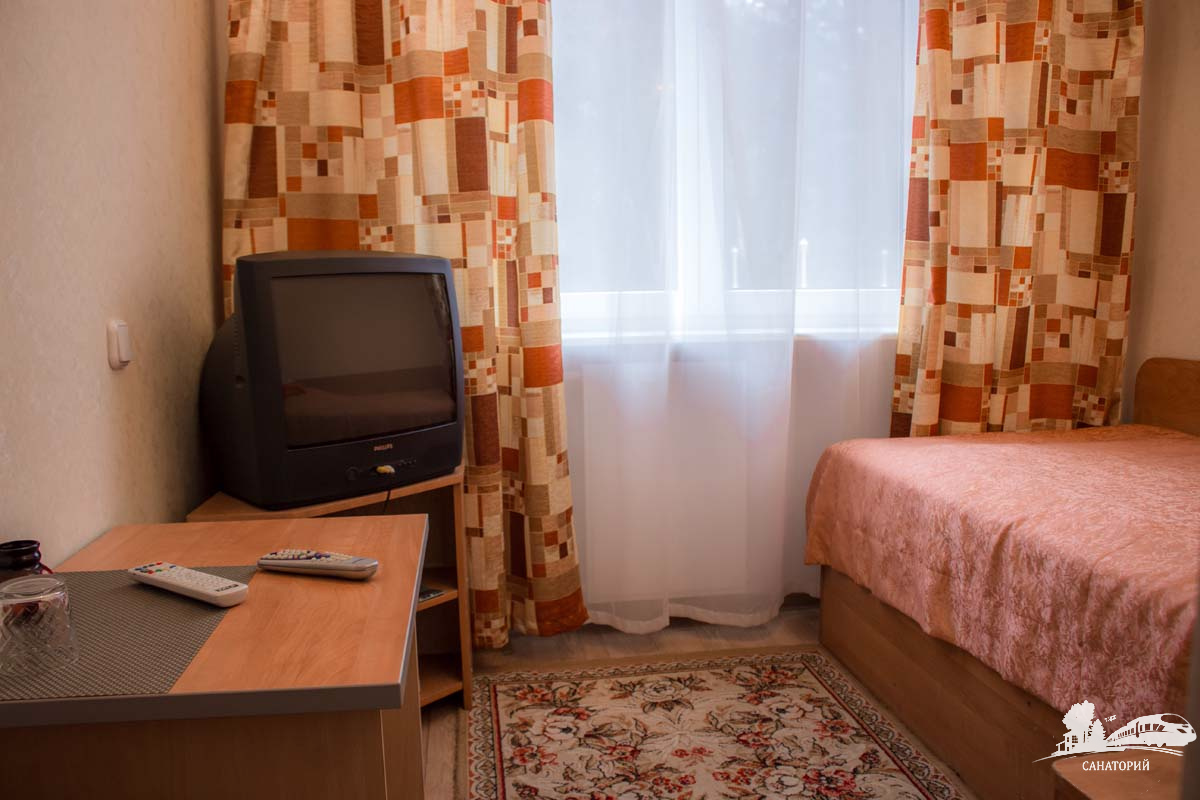 - 1-но местный Сингл первой категории в корпусе №2. В номере: туалет, умывальник, душ, холодильник, электрочайник, телевизор, телефон, wi-fi, одна жилая комната с полутораспальной кроватью. Номер рассчитан на проживание одного человека.