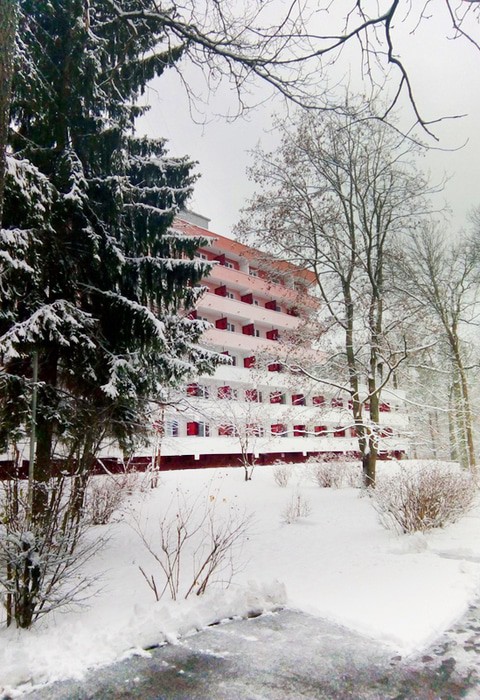 Номерной фонд: Спальные корпуса №1 - 4-х этажный (ремонт 2022 года) и №6- 6-ти этажный, соеденины теплыми переходами с лечебным корпусом и столовой. Корпус №3 отдельно стоящее здание. Санаторий рассчитан на 250 мест.