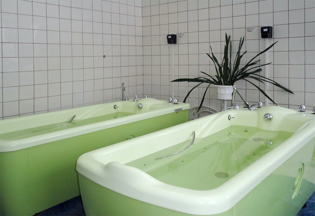 Ванны лечебные: минеральные, йодобромные, хвойные, скипидарные, скипофитовые ("Движение", "Женский", "Мужской", "Релакс", "Омолаживающий", "Общеукрепляющий", "Нормализация веса"), грязевые (сапропелевые, "Нафталановская нефть"), сероводородные, с солью древнего моря -бишофитом, с морской солью и ламинарией, эвкалиптом, горьким и молочным шоколадом,"Рецепты Клеопатры", для восстановления половой функции на основе пант "мужские" и "женские" и пр);