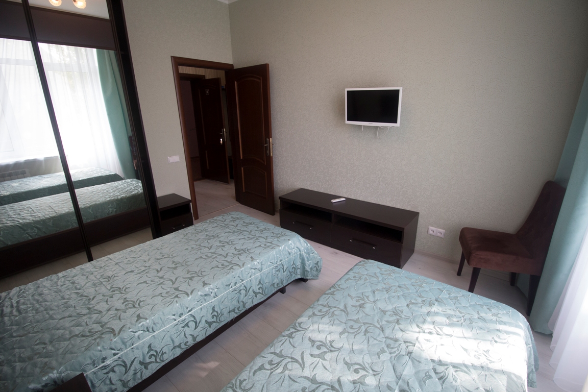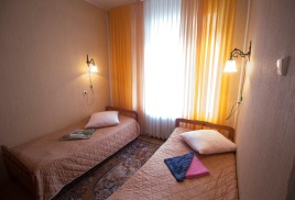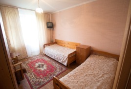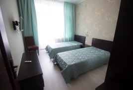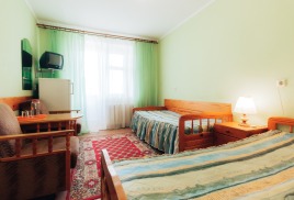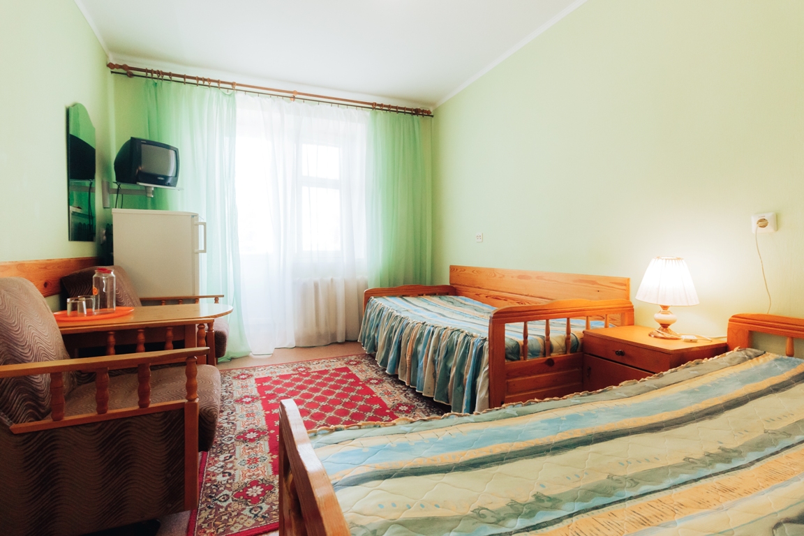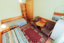 2-местный 1-комнатный номер 1-ой категории "TWIN / DOUBLE" В номере: 1,5-спальные кровати 2 шт./ 2-спальная кровать 1 шт, шкаф, комод, телевизор, холодильник, душ, туалет.