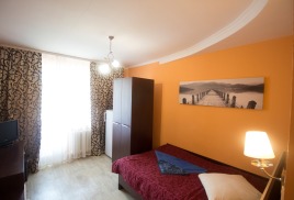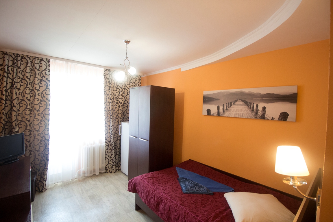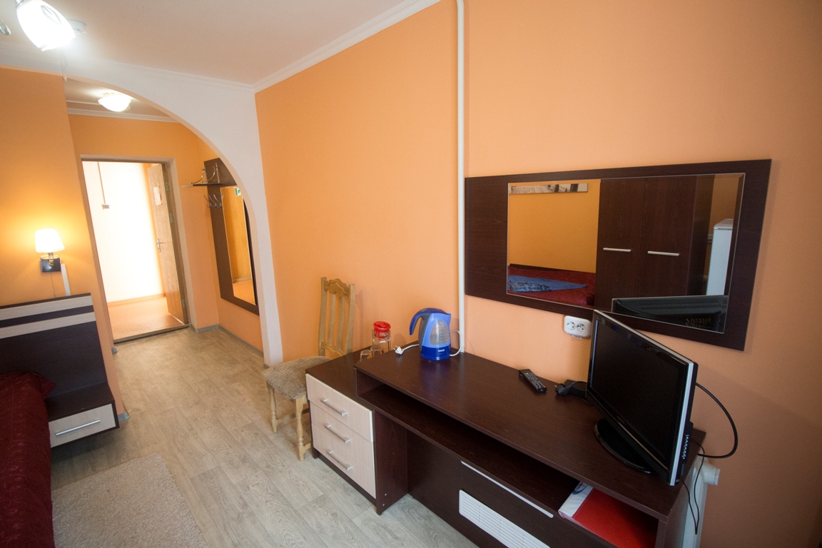 1–местный 1–комнатный номер первой категории "Single" : В номере: 1,5-спальная кровать, шкаф, комод, телевизор, холодильник, душ, туалет.