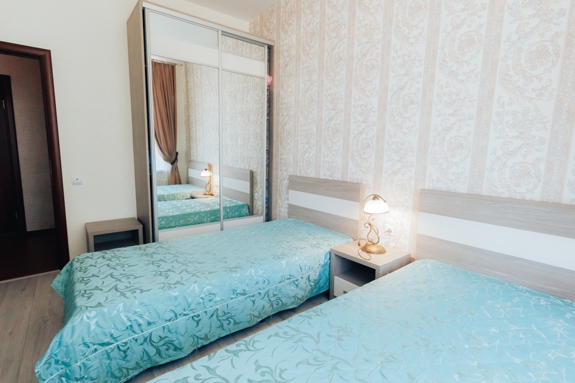 2-местный 1-комнатный номер 2-ой категории «Твин» (Блок 2+2) В номере: 1,5-спальные кровати, прикроватные тумбочки, шкаф (в каждой комнате), телевизор (в каждой комнате), холодильник (в каждой комнате), душ, туалет.