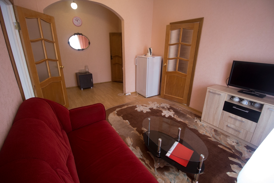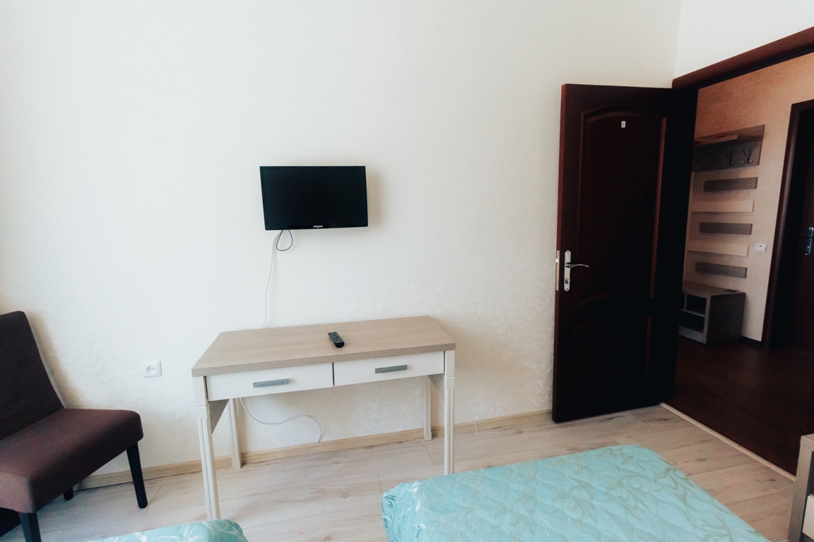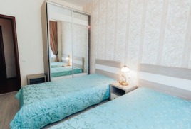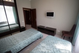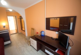 4-местный 3-комнатный 2 категории Family. В номере: 2-спальная кровать,1,5-спальные кровати, прикроватные тумбочки, шкаф (в каждой комнате), телевизор (в каждой комнате), холодильник, душ, туалет.
