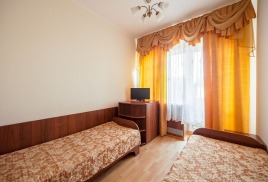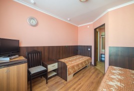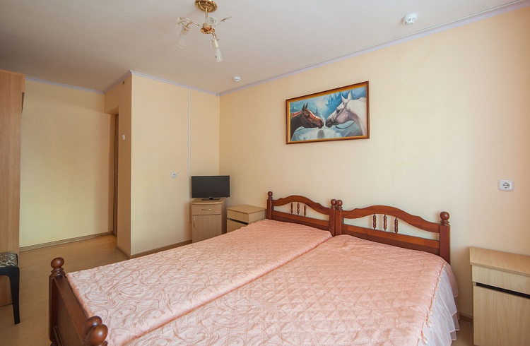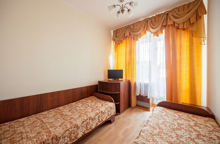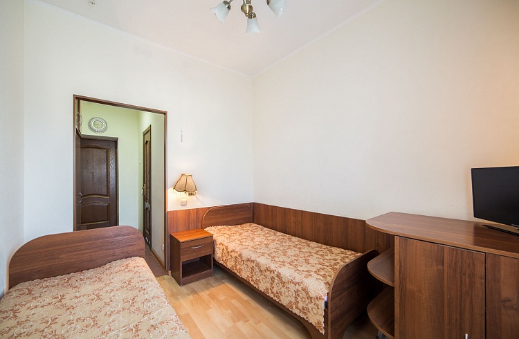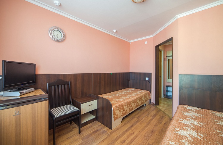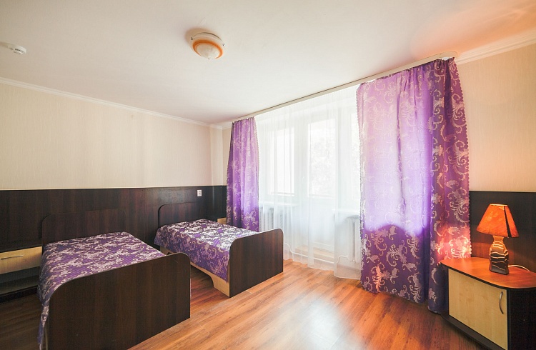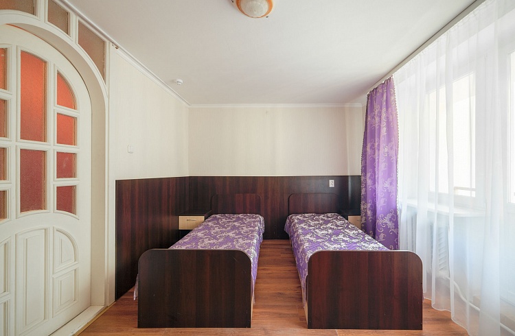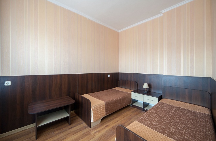 2 местный номер в блоке (главный корпус) в номере раздельные кровати односпальные, шкаф, тумбочки, телевизор, удобства: душ, туалет, умывальник на блок.