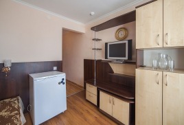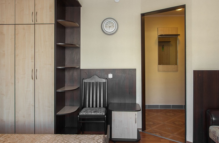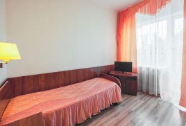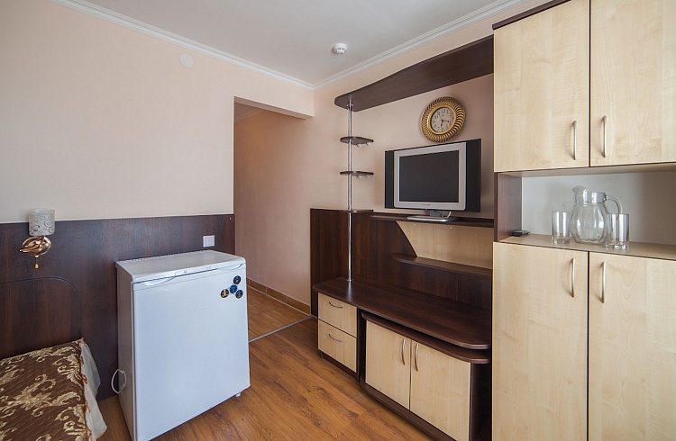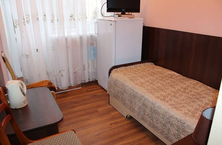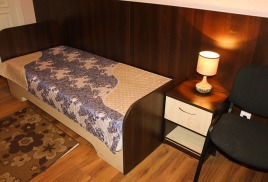 1 местный номер тип «А+», ( 1 корпус, 1 этаж). Площадь номера – 16 кв.м. В номере: односпальная кровать размером 120х200 см., тумбочка (около кровати),телевизор. (32 дюйма), холодильник (50 см. высотой), посуда, чайник,гладильная доска, утюг,санузел (душевая кабина, туалет), фен, стол,стул,прихожая (полка для обуви, зеркало).