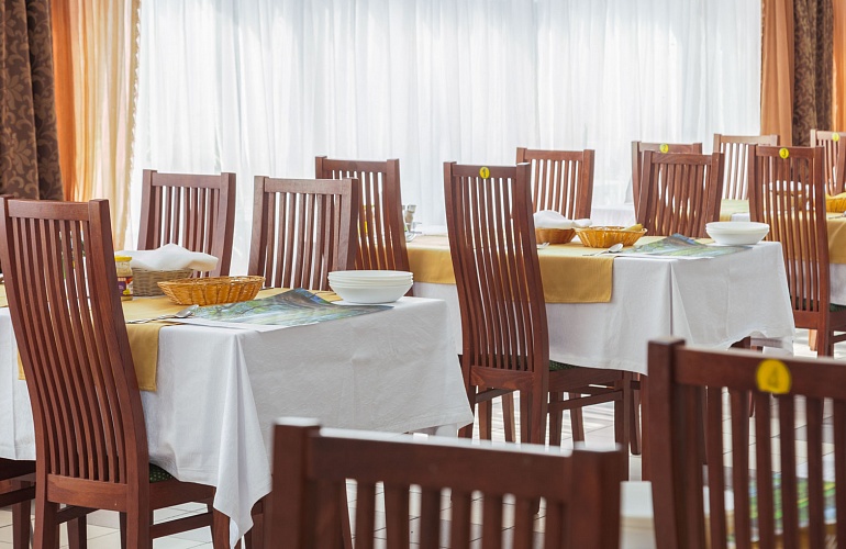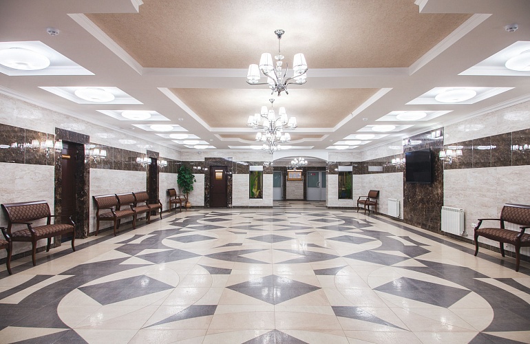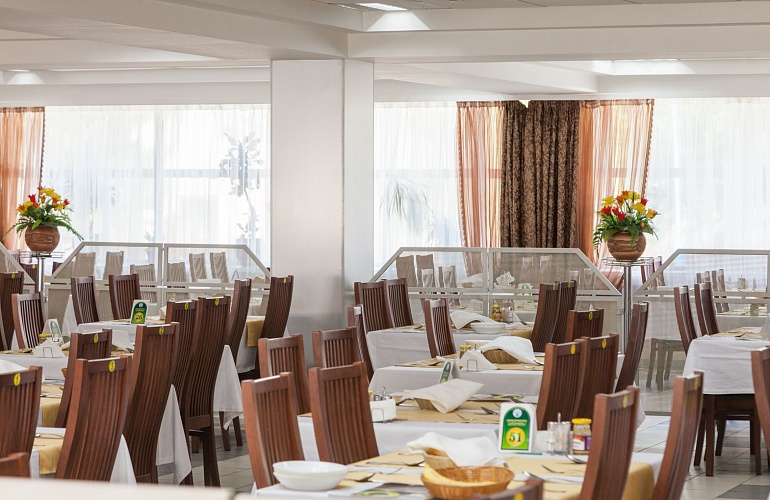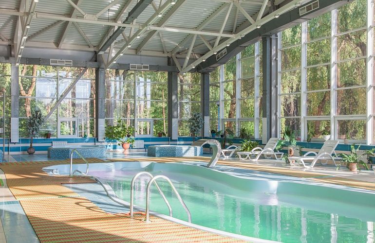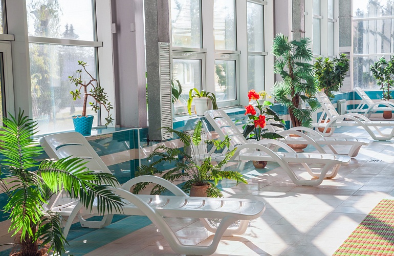Номерной фонд: Три отдельно стоящих корпуса (главный корпус 5-этажный (с лифтом), два 3-этажных корпуса №2, №3. Главный корпус соединен теплым переходом со столовой и лечебным корпусом. 2-ой и 3-й корпуса отдельно стоящие.