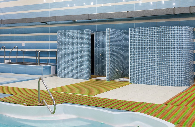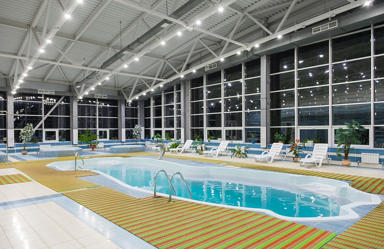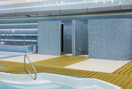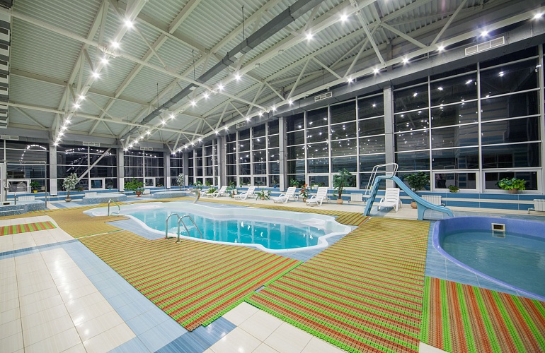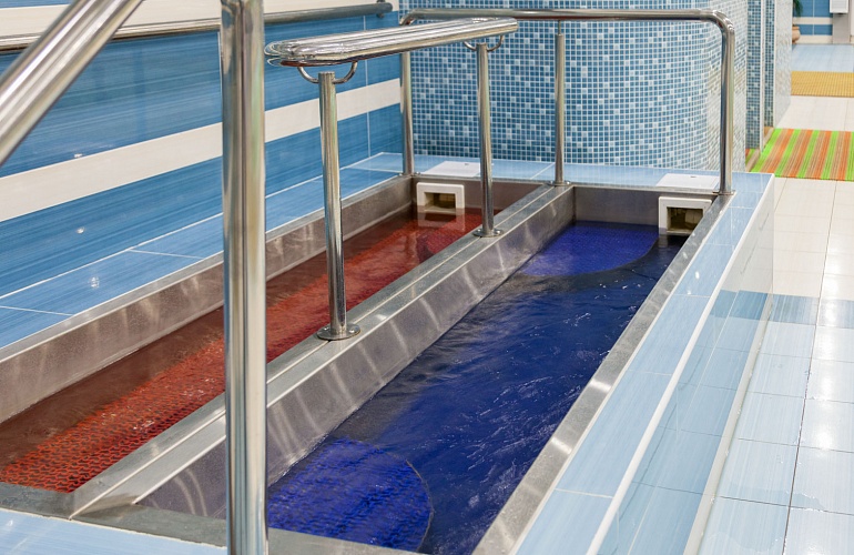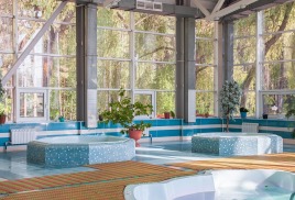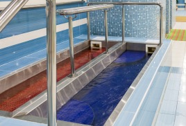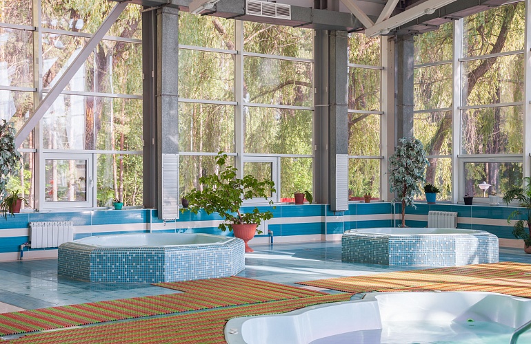 бассейн лечебный: одна чаша 12 м.(каскад), 2 джакузи, одна подводная вытяжка и детская чаша с горкой