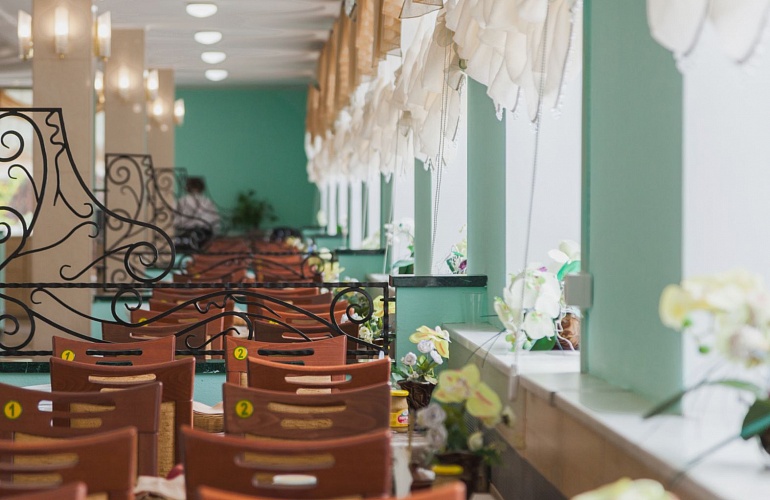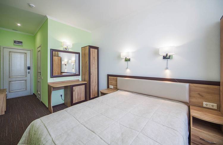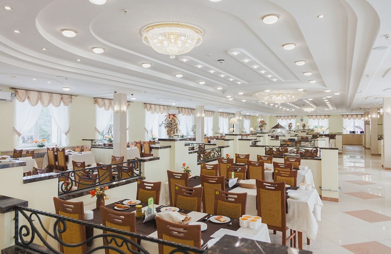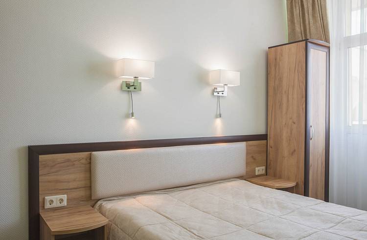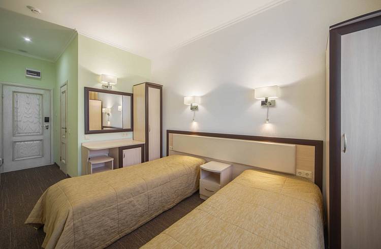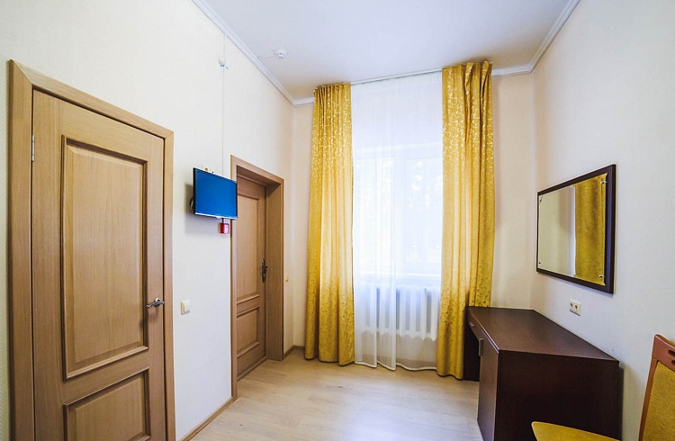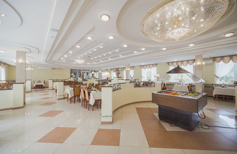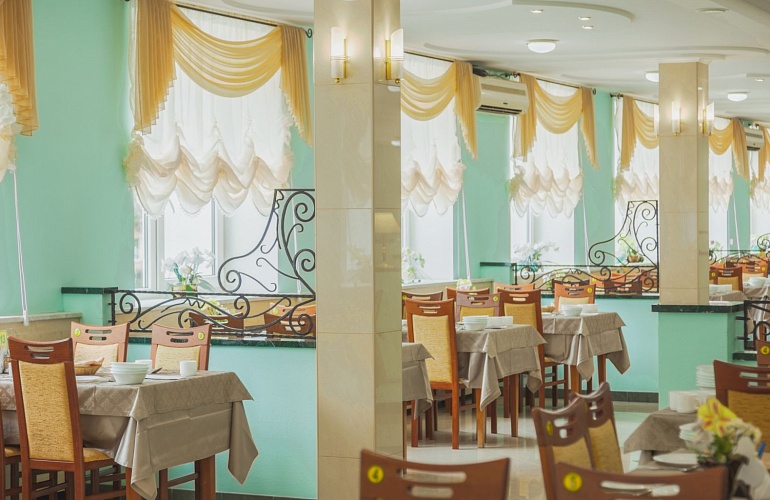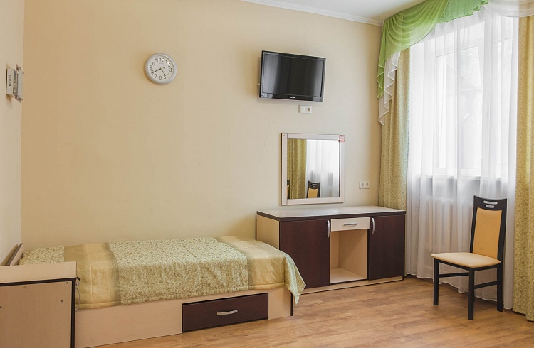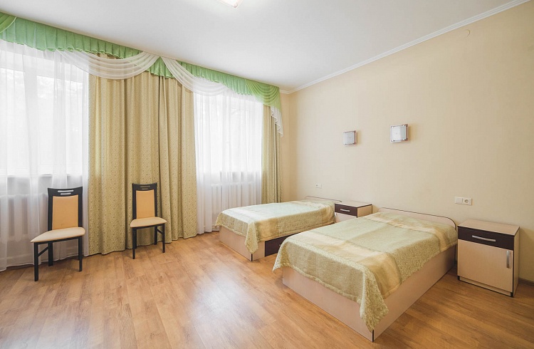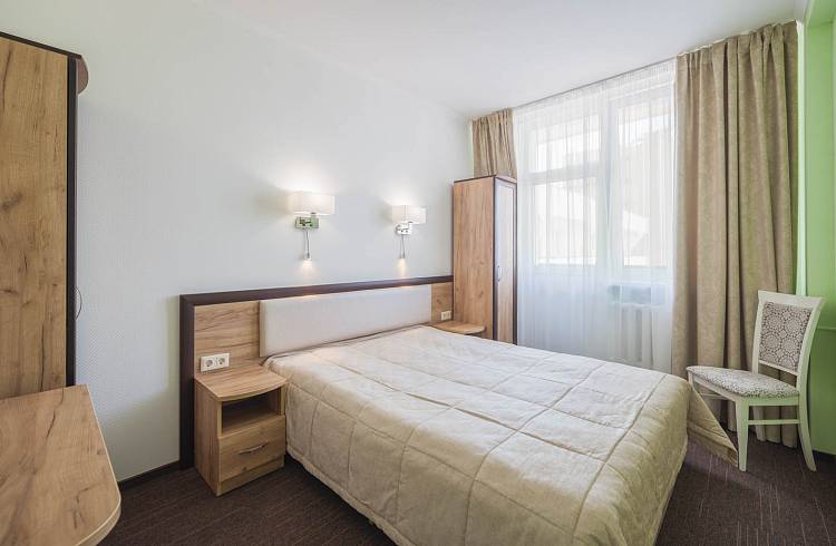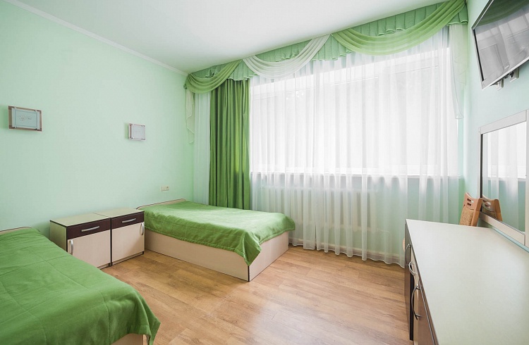 Номерной фонд: Главный корпус 8-ми этажное здание. Лечение и питание осуществляется в этом здании. В корпусе есть лифты. Жилые комнаты находятся на 4, 5, 6, 7, 8-м этажах. Для отдыхающих с ограниченными физическими возможностями есть специализированный лифт и пандусы.