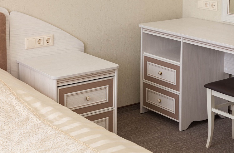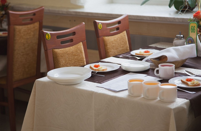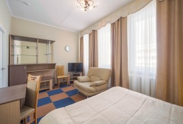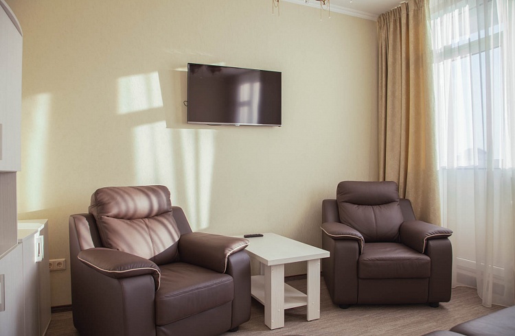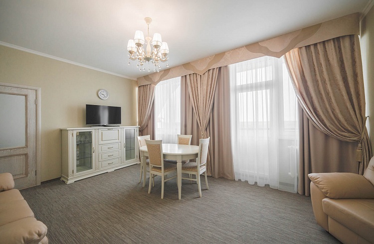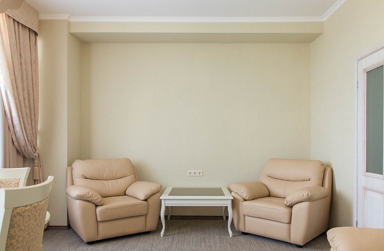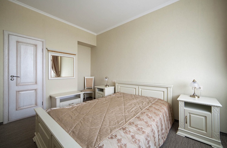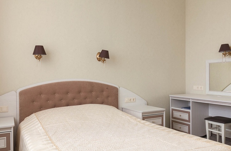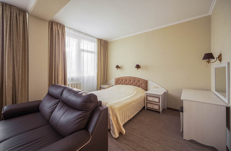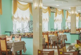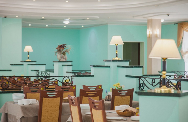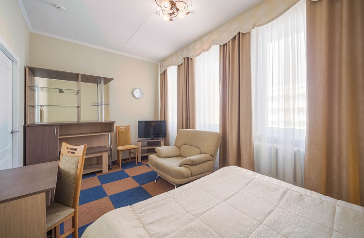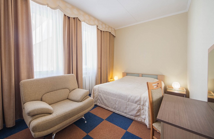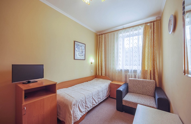 Номерной фонд: Главный корпус 8-ми этажное здание. Лечение и питание осуществляется в этом здании. В корпусе есть лифты. Жилые комнаты находятся на 4, 5, 6, 7, 8-м этажах. Для отдыхающих с ограниченными физическими возможностями есть специализированный лифт и пандусы.