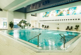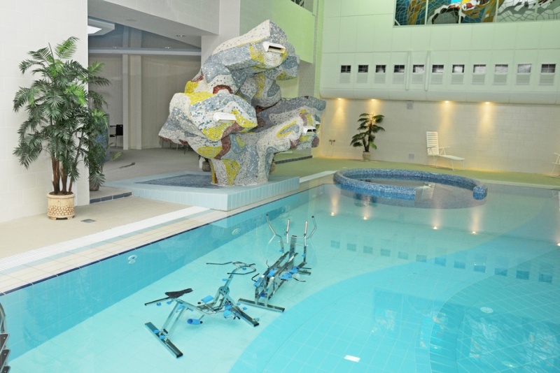 - бассейн (260 м2, душ-каскад, разноуровневые торцевые массажные подушки, подводные гейзеры, водные тренажеры)