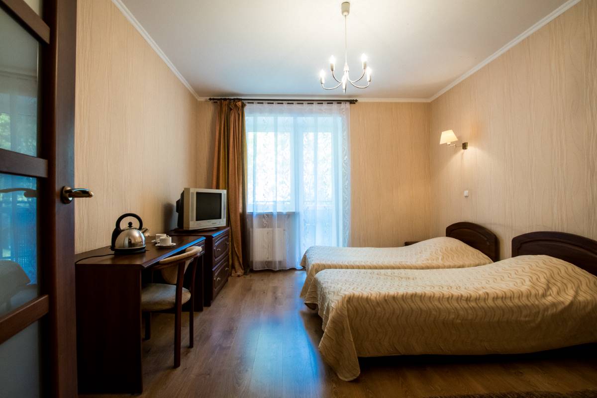 - 2-х местный 1-но комнатный номер ( 1 корпус). В номере: 2 раздельные кровати, душ, туалет, ТВ, холодильник, радио, чайник