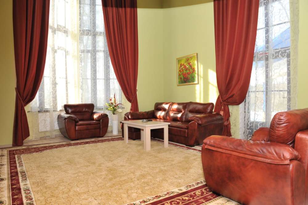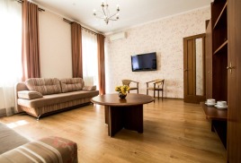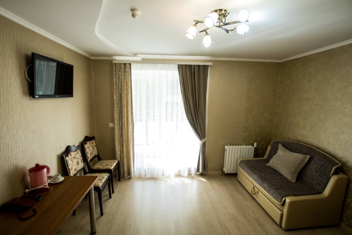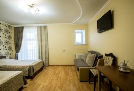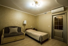 - 4-х местный 2-х комнатный (1 корпус) В номере: 2-х спальная кровать, в гостиной мягкая мебель,душ, туалет, ТВ, холодильник, чайник