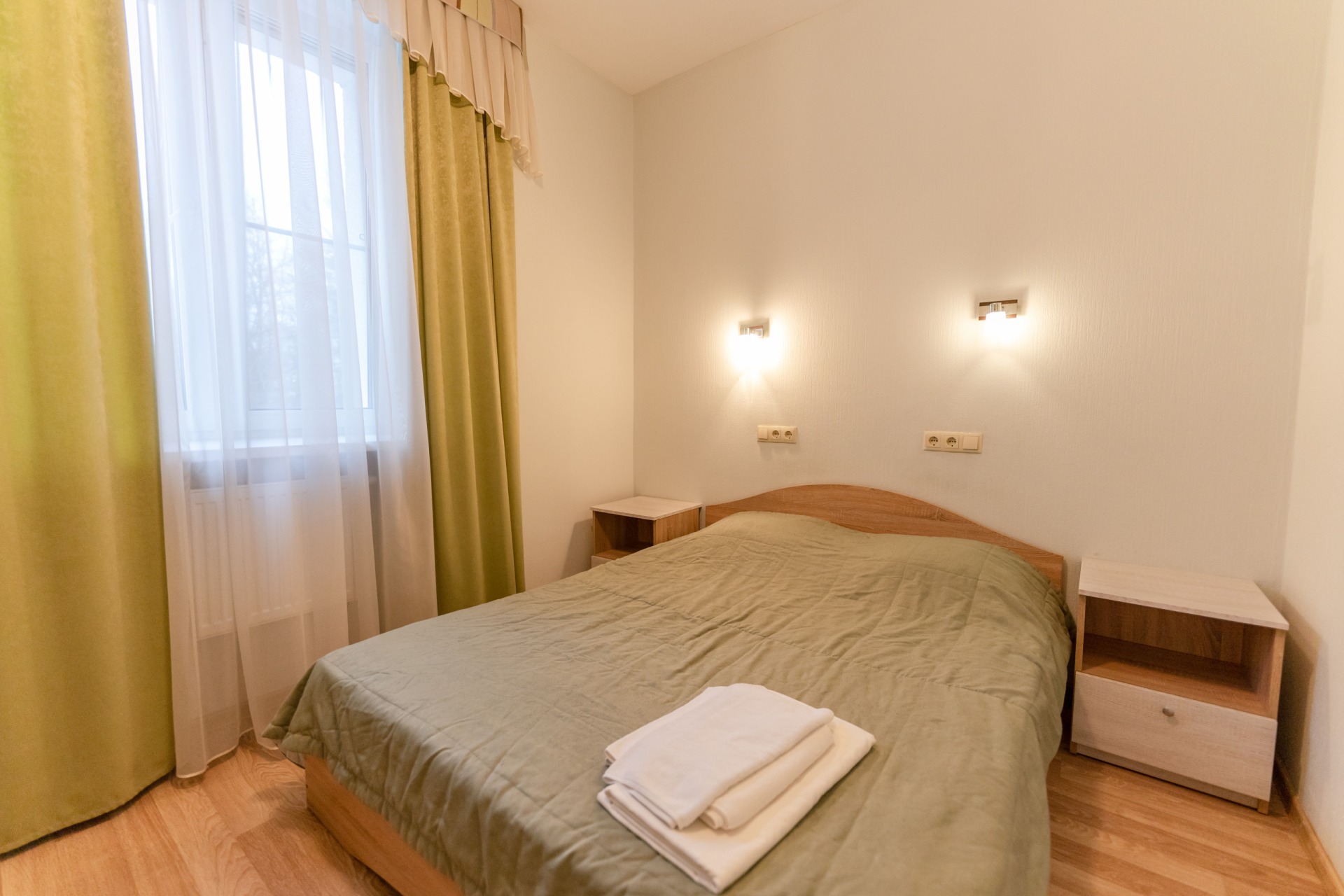 2-местный 2-комнатный Стандарт Твин/Дабл: спальня с двумя раздельными кроватями или с двуспальной кроватью, гостинная с мягкой мебелью, телевизор, мини холодильник, чайник с набором посуды, санузел с душем.