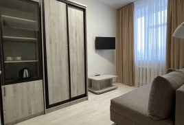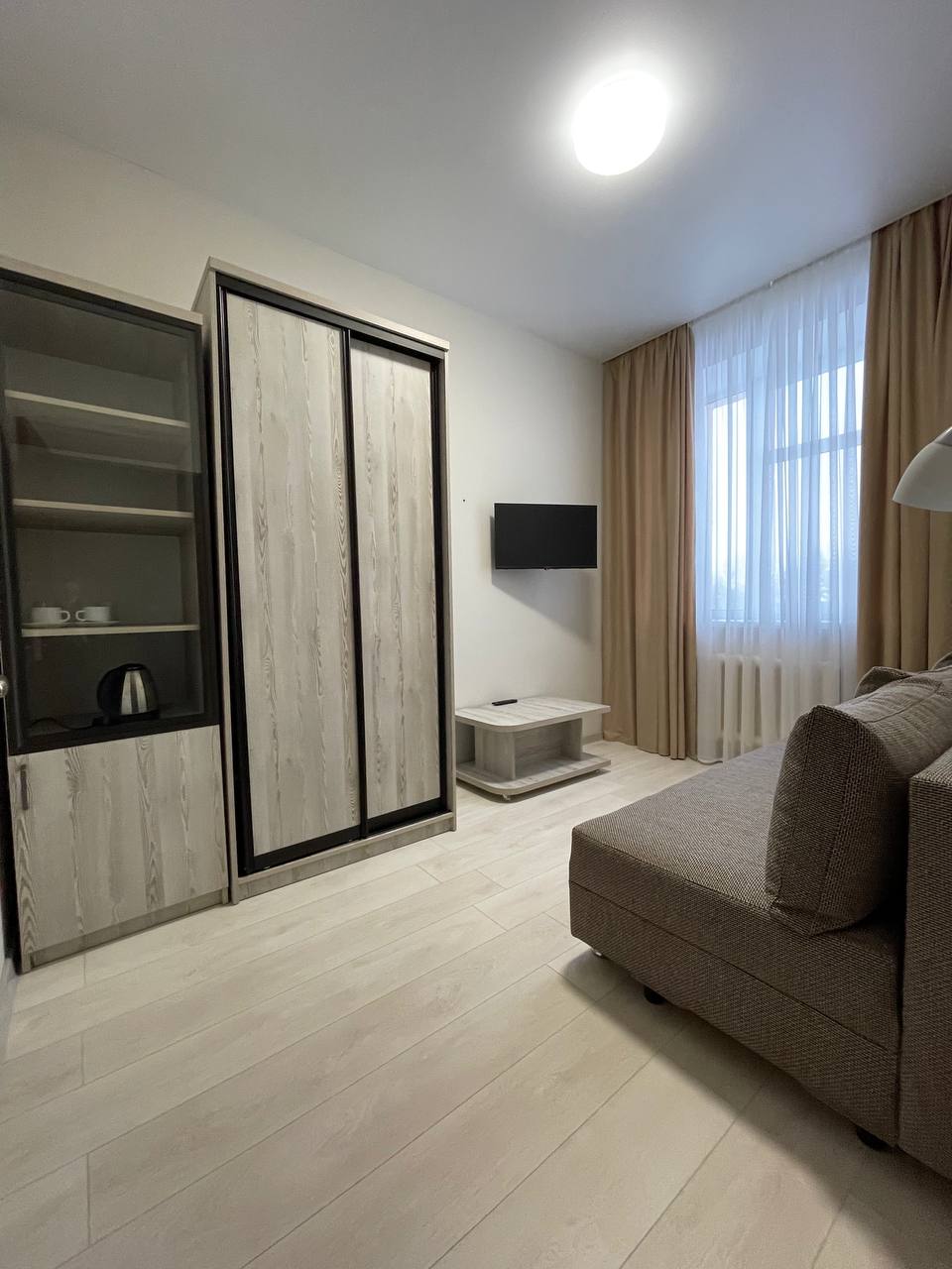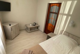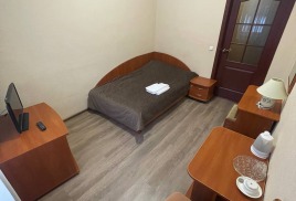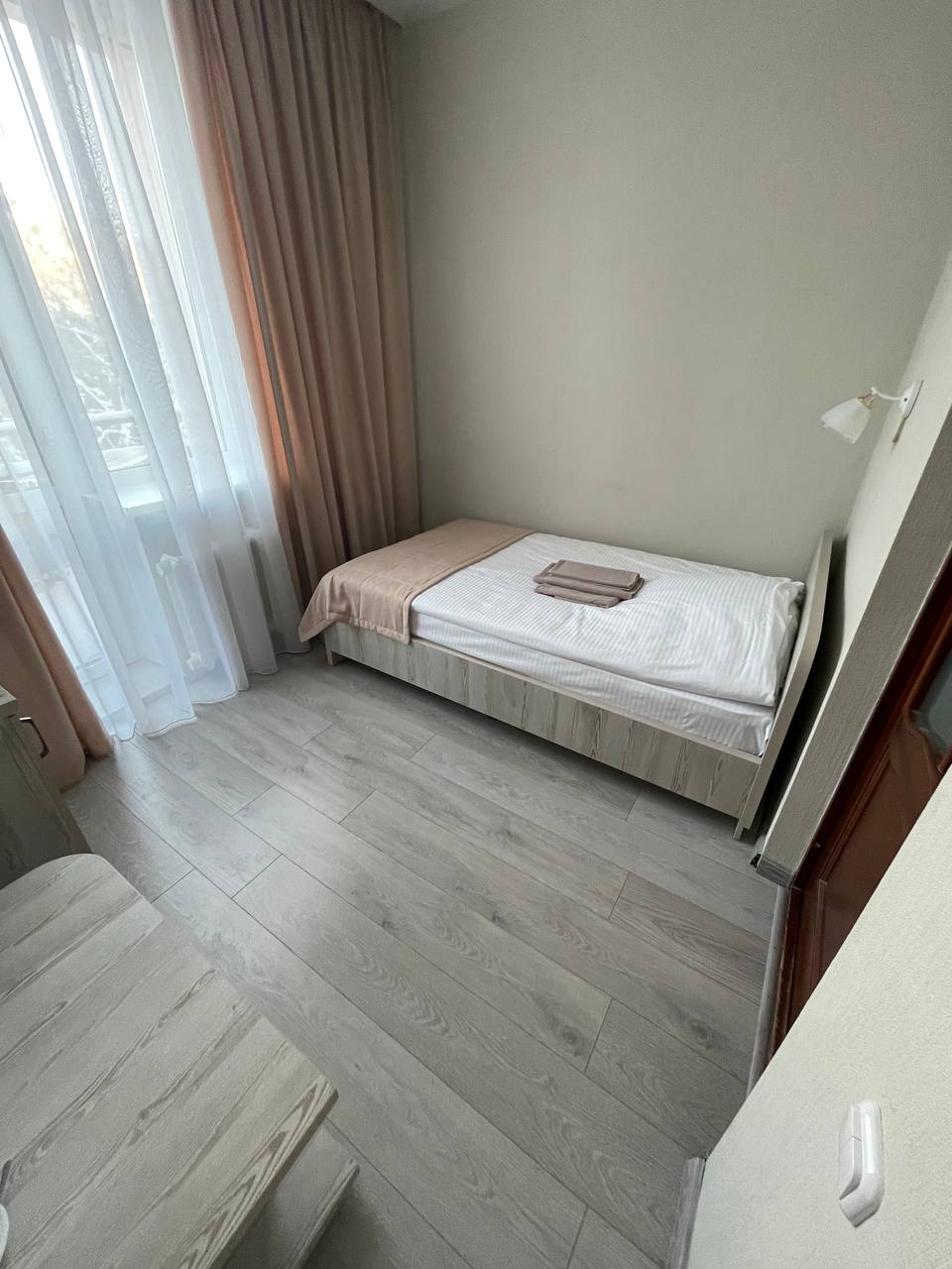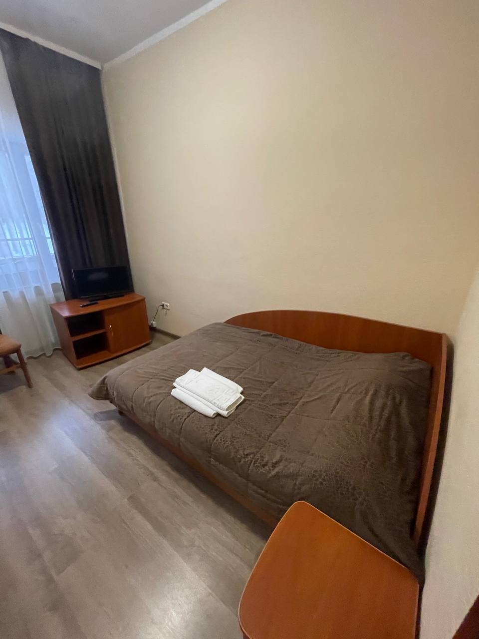 1-местный 1-комнатный Стандарт: односпальная кровать (120 см), телевизор, мини холодильник, чайник с набором посуды, санузел с душем.