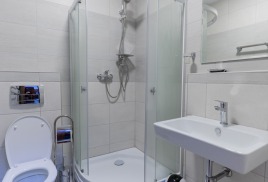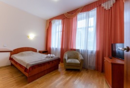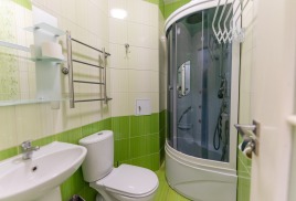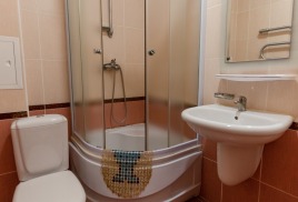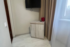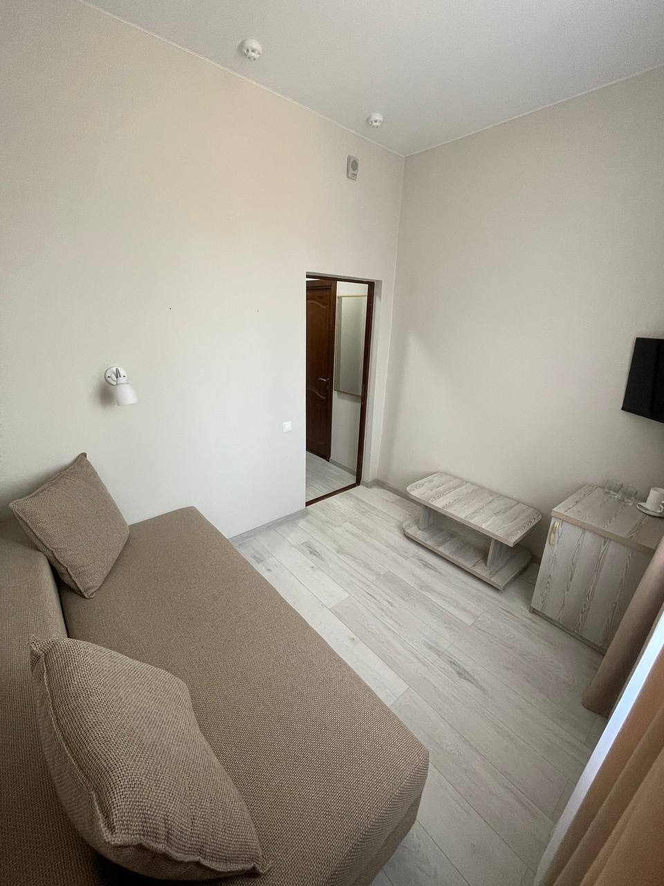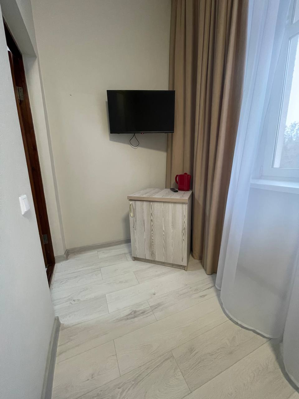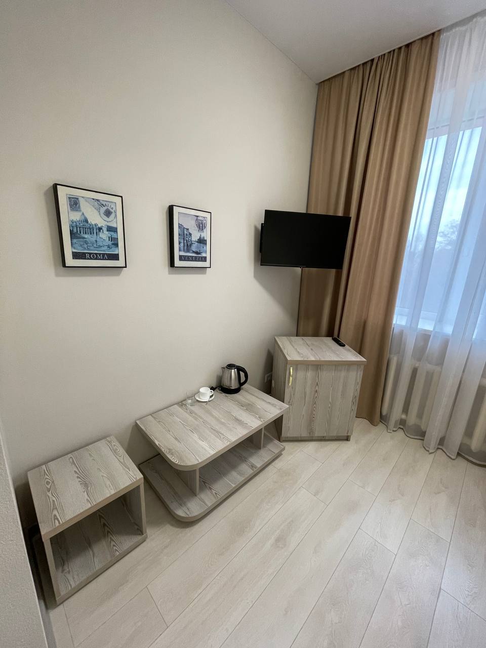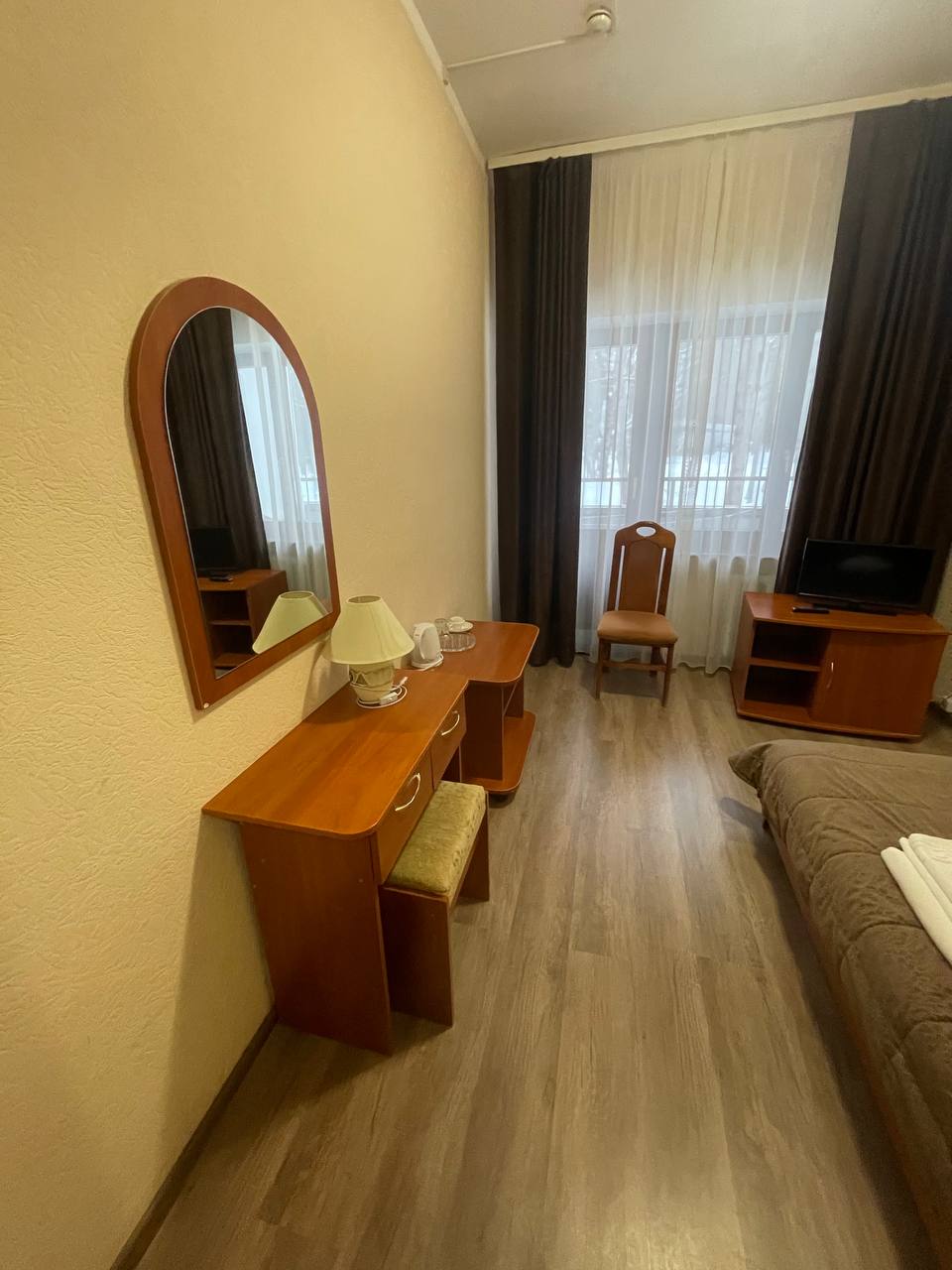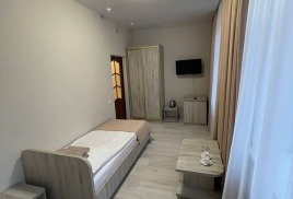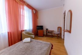 1-местный 1-комнатный Стандарт плюс: односпальная кровать (160 см), телевизор, мини холодильник, чайник с набором посуды, санузел с душем.