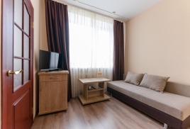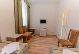 2-местный 2-комнатный Стандарт Твин без балкона: спальня с двумя раздельными кроватями, гостинная с мягкой мебелью, телевизор, мини холодильник, чайник с набором посуды, санузел с душем. Номер без балкона