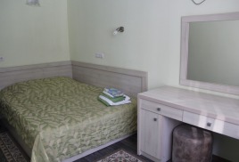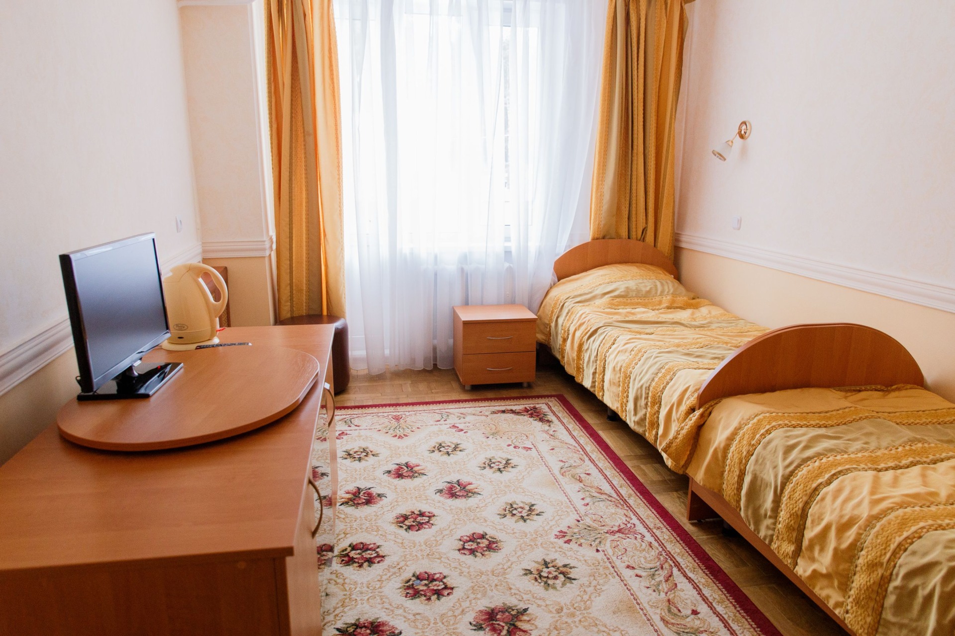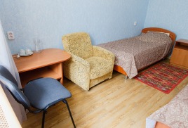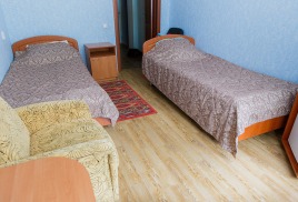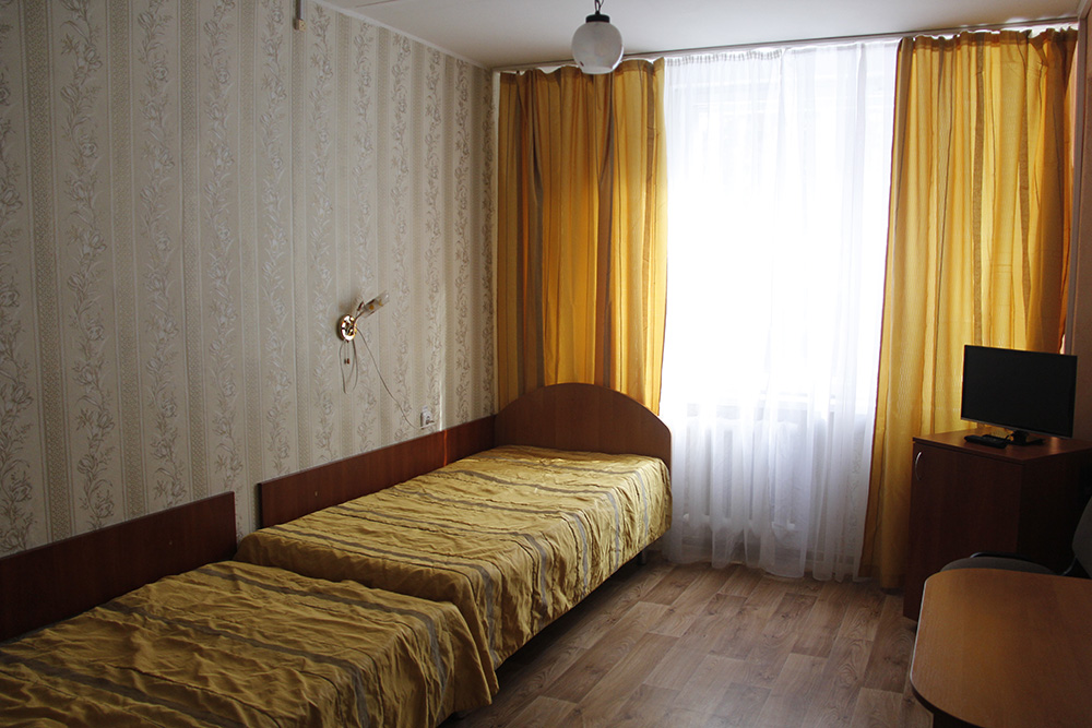 1 комнатный 2 местный ЭКОНОМ (2-6 этаж, балкон есть в некоторых номерах) Общая площадь: 20 кв.м., жилая – 12 кв.м. В номере: встроенный шкаф в прихожей, журнальный столик, две тумбочки, два стула, две односпальные кровати, телевизор, набор посуды, душ, туалет, Wi-Fi. Возможно подселение 3-ого человека – выдвижная кровать или кресло-кровать.