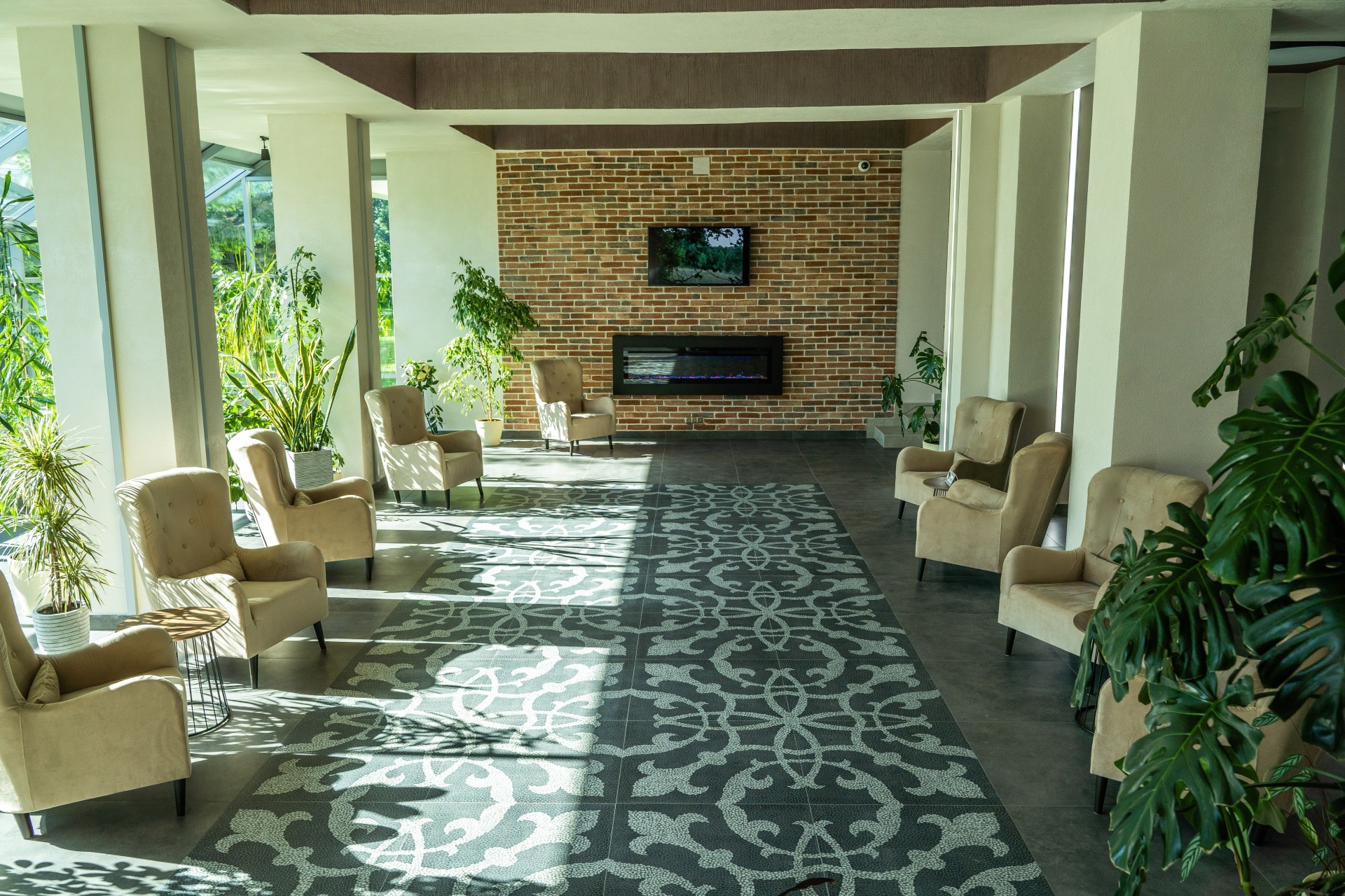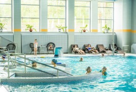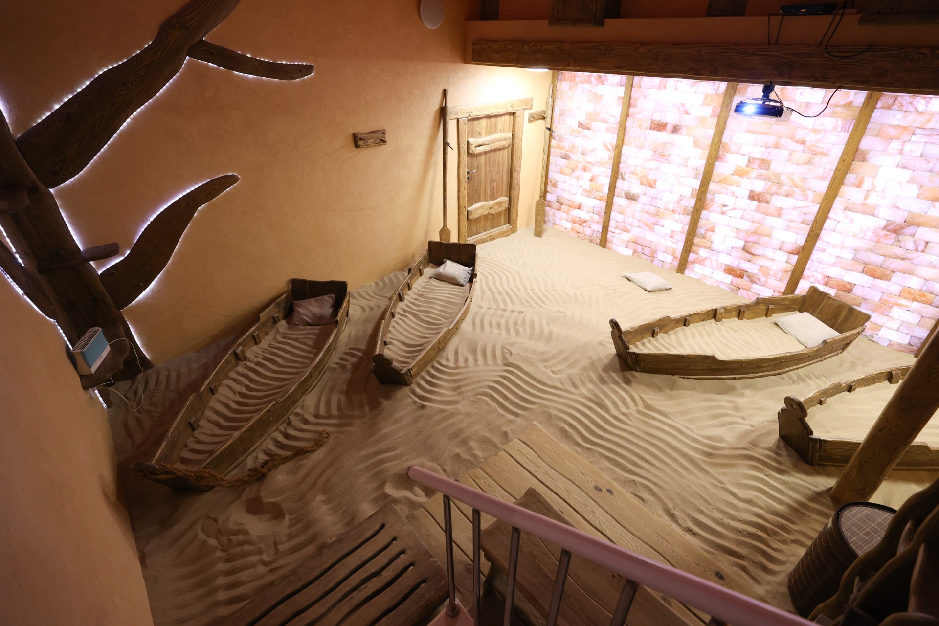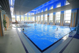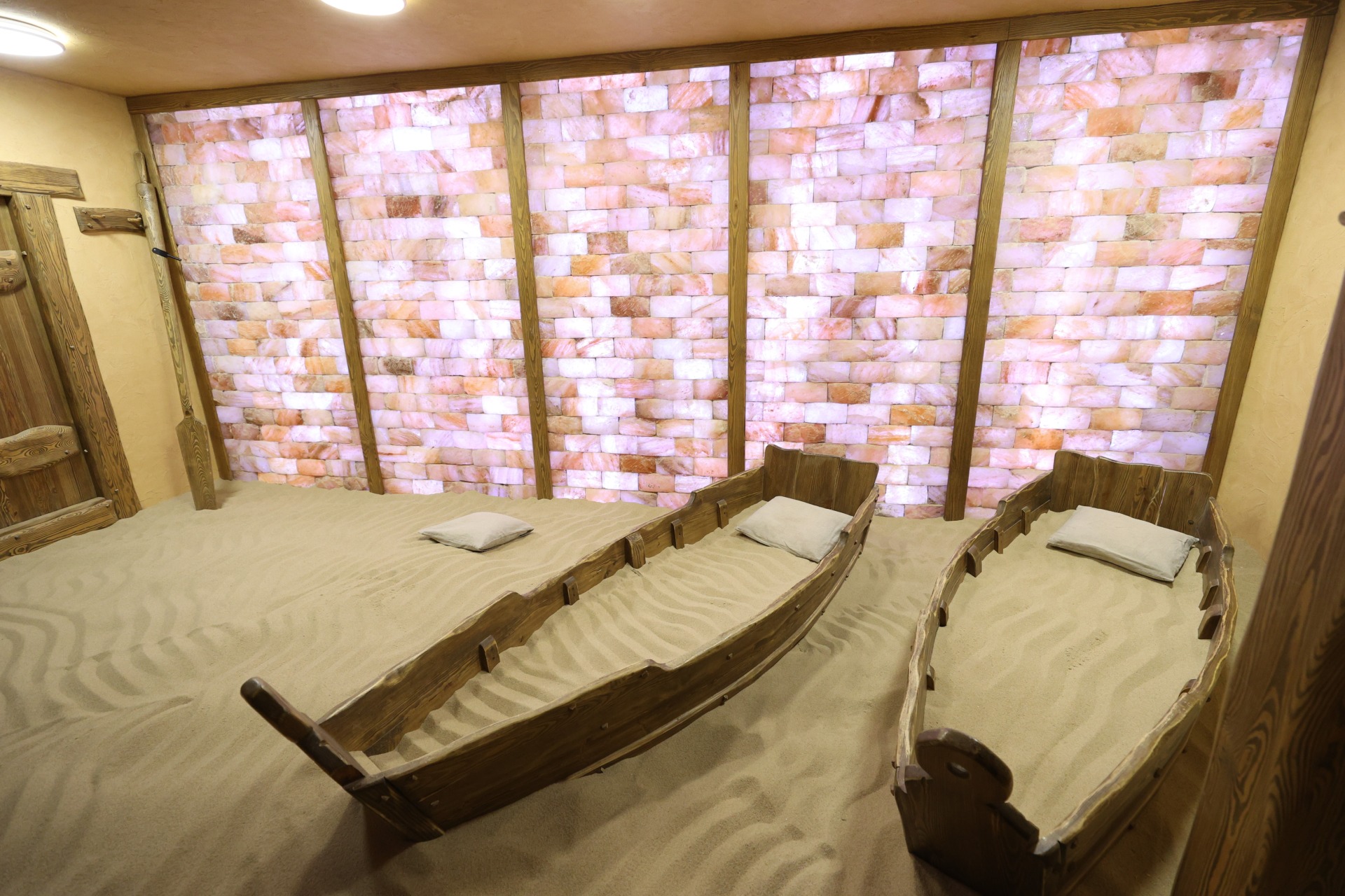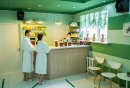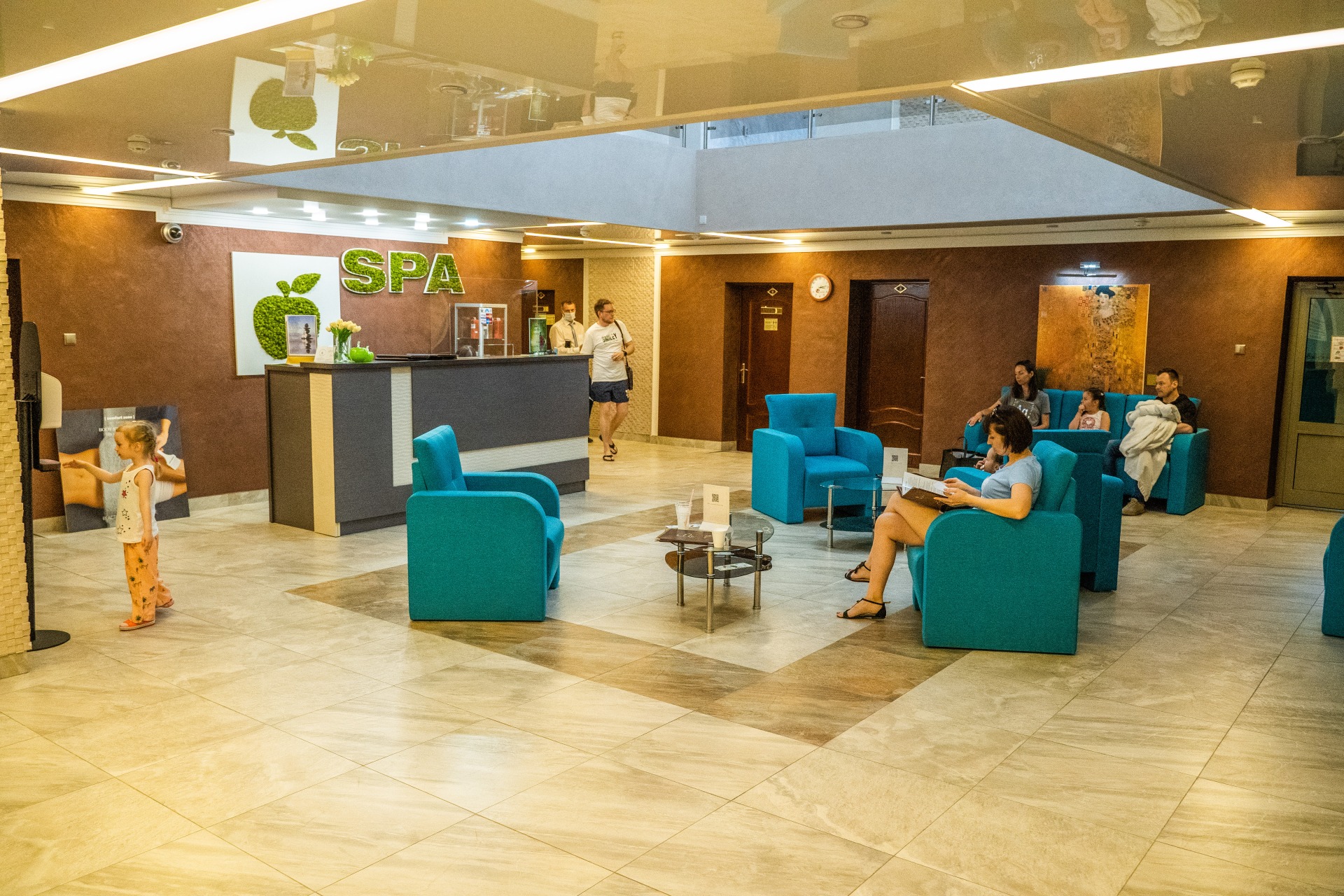 Номерной фонд: состоит из двух 7-этажных спальных корпусов: «Приозерный» и «Лазурный», рассчитанных на 440 мест и 7 коттеджей (каждый из которых рассчитан максимум на 6 мест). В декабре 2011 года был открыт теплый переход, который соединил между собой два жилых корпуса и новый лечебный корпус.