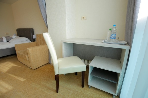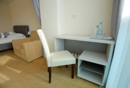 2-х местный 2-х комнатный номер (корпус Приозерный, Лазурный) В номере: шкаф в прихожей, телефон, wi-fi, набор посуды, чайник, утюг, сушилка для белья, гладильная доска, в гостиной диван, кресло, стол, тумбочки, стулья, 2 телевизора(17 телеканалов), в спальне комод, кровать( 1,6 м.), холодильник, санузел, душ, фен, сейф.