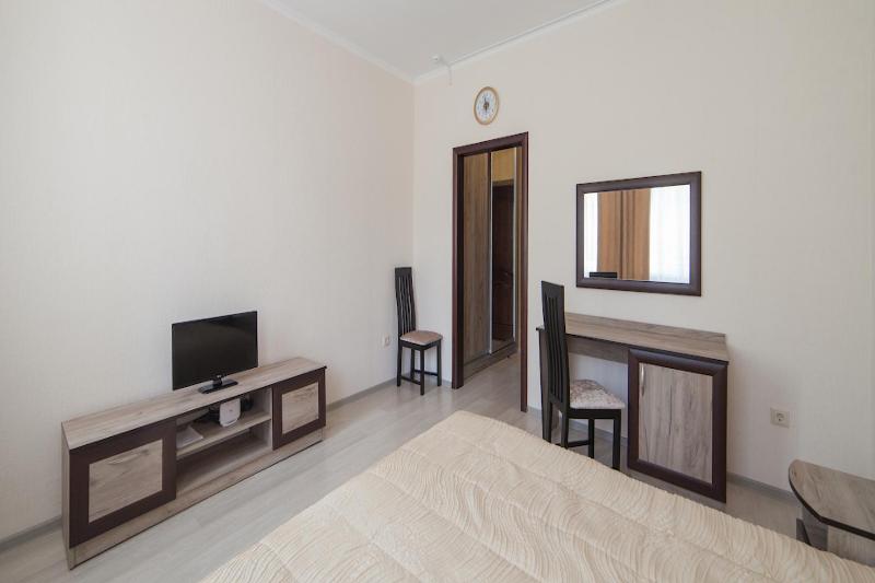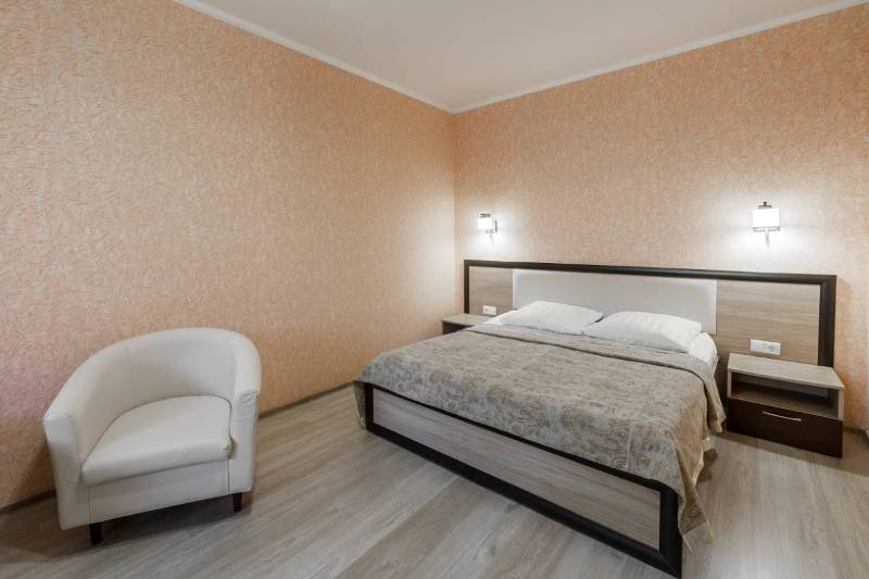 1-но местный 2-х комнатный номер Люкс площадь номера 40 кв.м.в корпусе № 4 ( в эксплуатации с 2019 года) В номере 2-х спальная кровать160*2, в гостиной 2-х спальный диван, душ, туалет, умывальник / тв, утюг, гладильная доска, холодильник, чайник, набор посуды, сейф, кондиционер