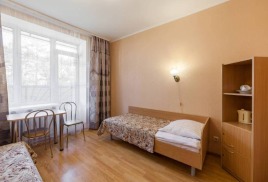 1-но местный 2-х комнатный номер в главном корпусе. В номере 2-х спальная кровать, в гостиной диван, душ, туалет, умывальник / тв, холодильник, чайник.