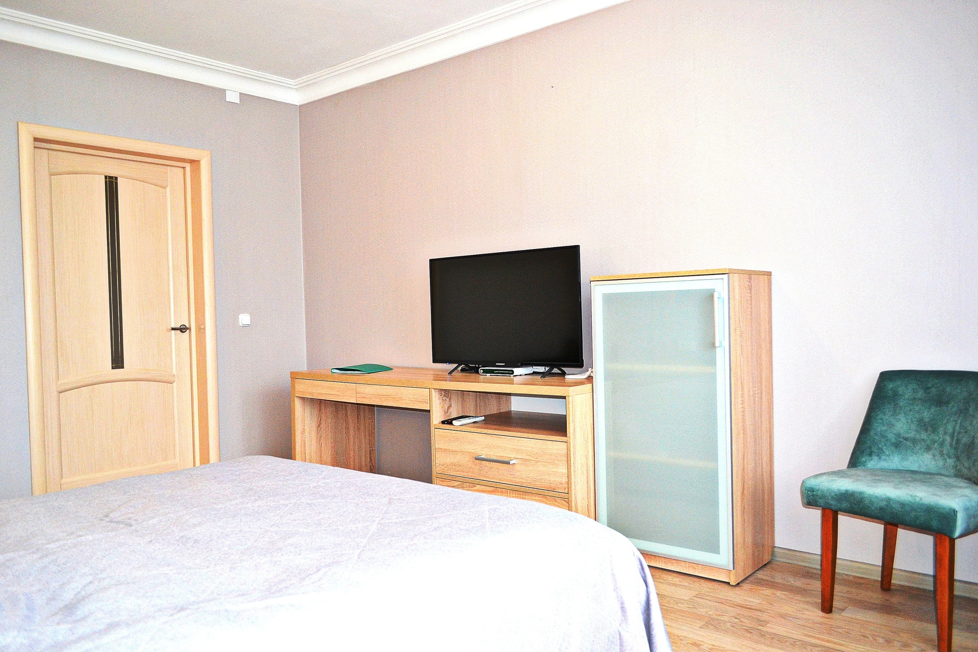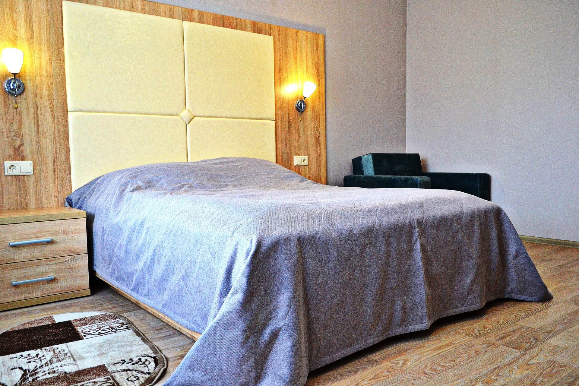 1-комнатный 1-местный: набор мебели, односпальная кровать (0,9 м), телефон, ТВ, утюг, холодильник, набор посуды, чайник, есть номера балконом, душ/туалет/умывальник. Дополнительное место: диван.