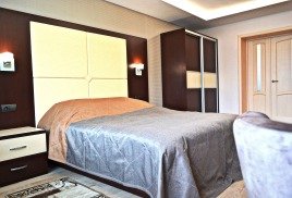 3-комнатный 2-местный: набор мебели, двуспальная кровать (1,6 м), телефон, ТВ, утюг, холодильник, набор посуды, чайник, душ, туалет, умывальник. Дополнительное место: кровать (1,5 м).