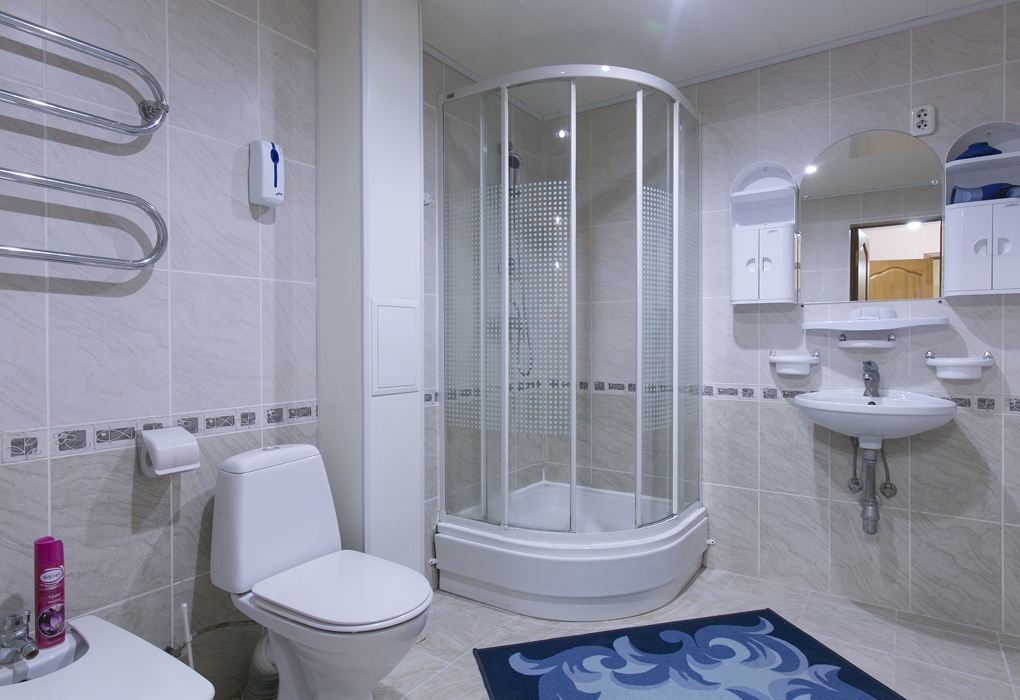 - Улучшенный 1-местный: одна двухспальная кровать, санузел (душевая кабинка, туалет, умывальник), застекленный балкон (на балконе стол со стульями, сушилка для белья), ЖК-телевизор, холодильник, сейф, фен, электрочайник, посуда, приборы.