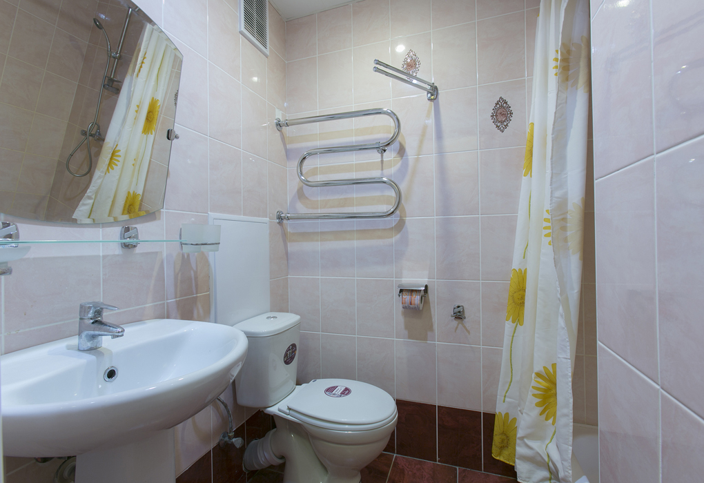 - Стандартный 2-местный: две полутороспальные кровати, санузел (душ, туалет, умывальник), телевизор, холодильник, электрочайник, посуда