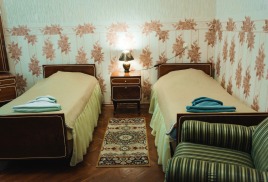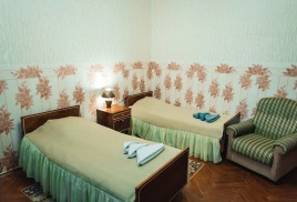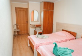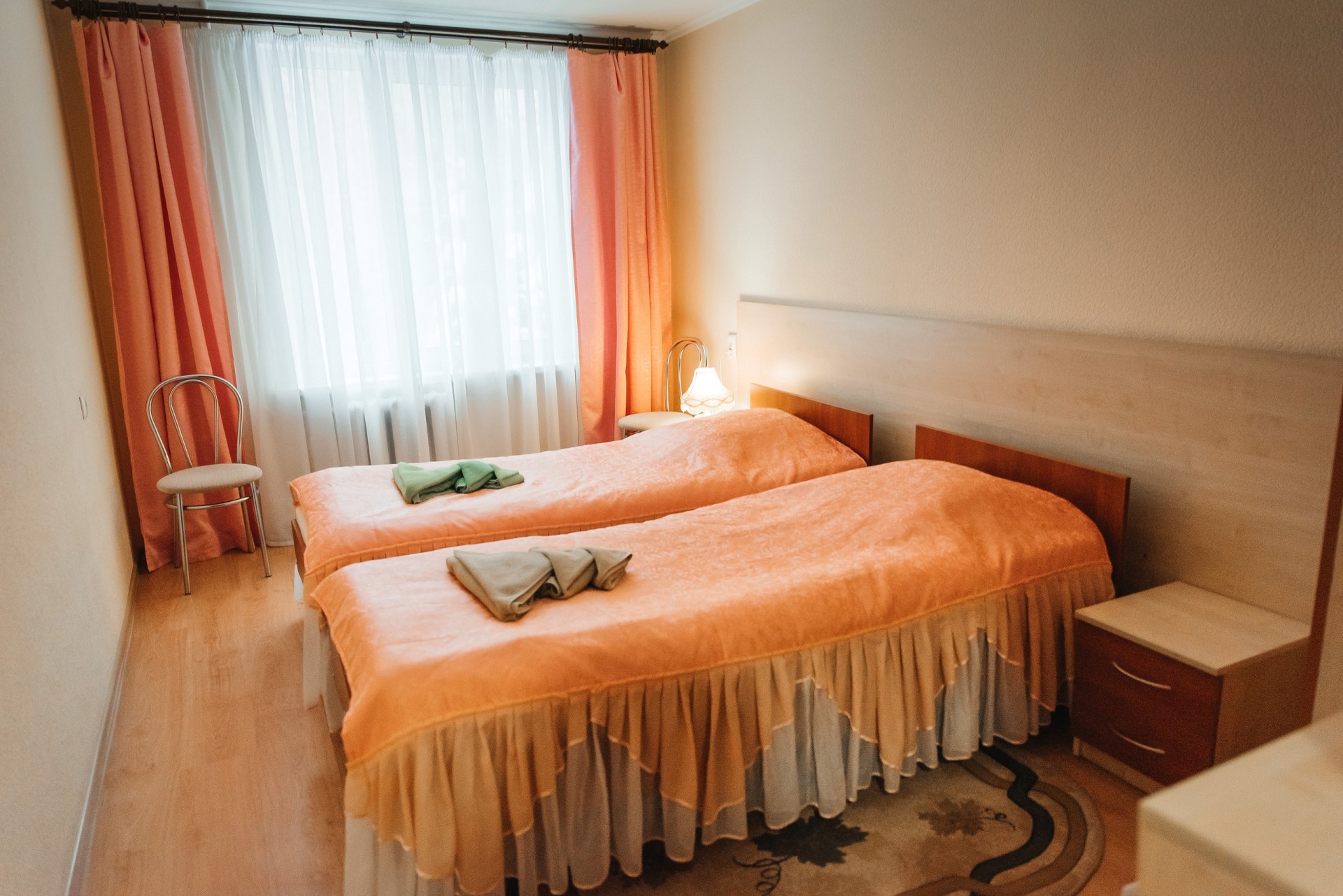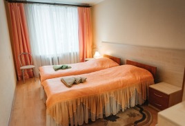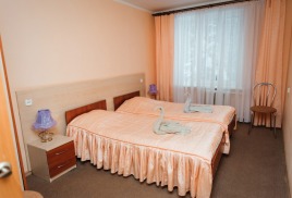 - 2-х местный двухкомнатный номер: В номере две односпальные кровати, в гостиной мягкая мебель, ТВ, холодильник, чайник, душ, туалет, умывальник, небольшая кухня.