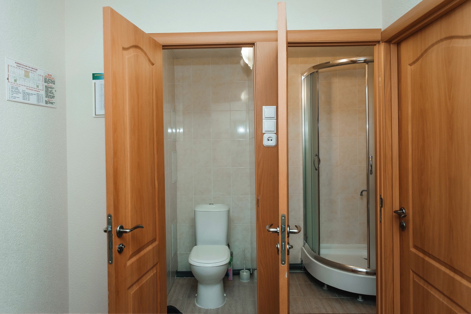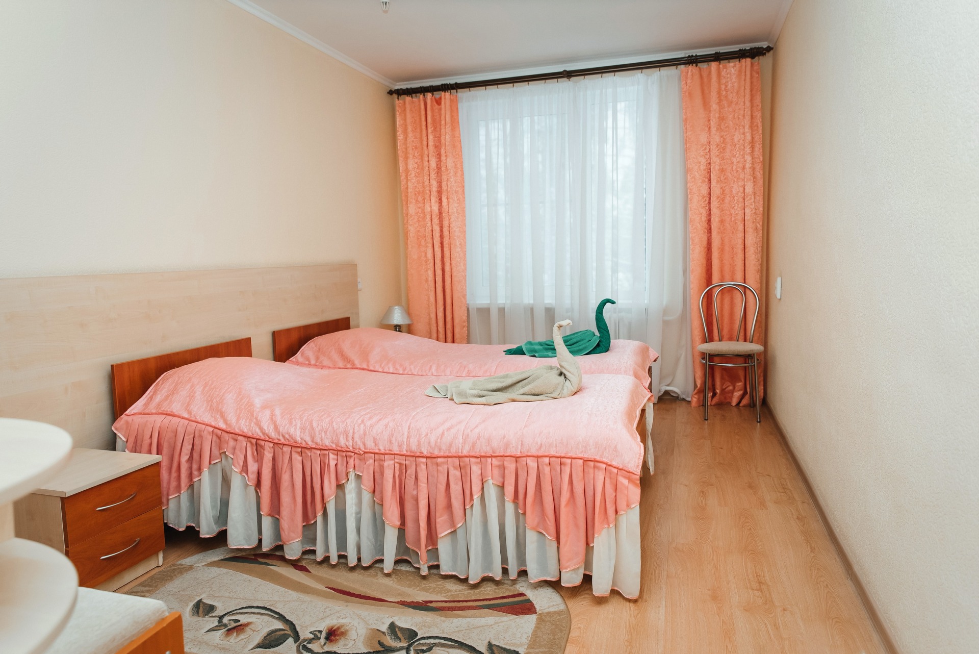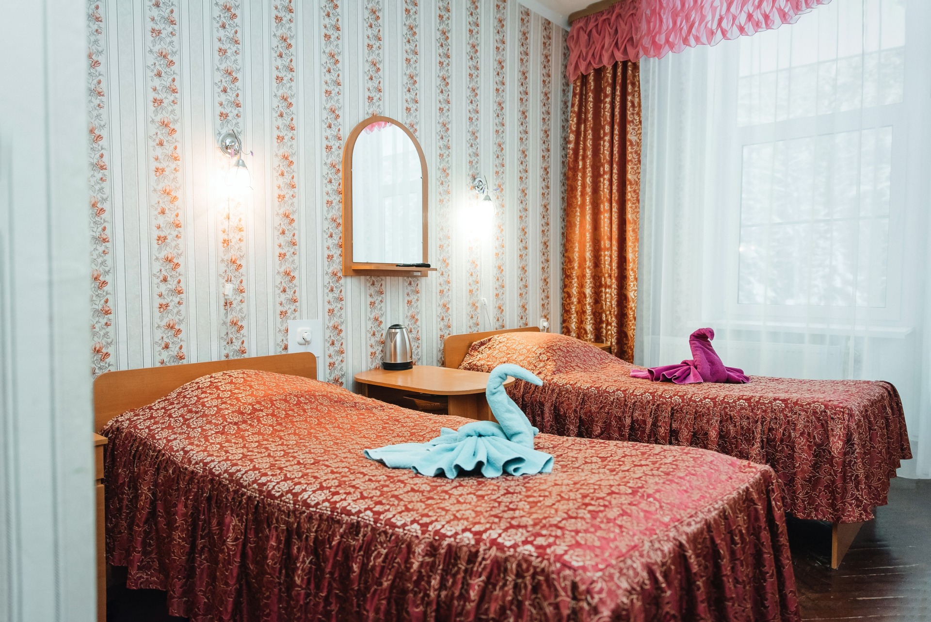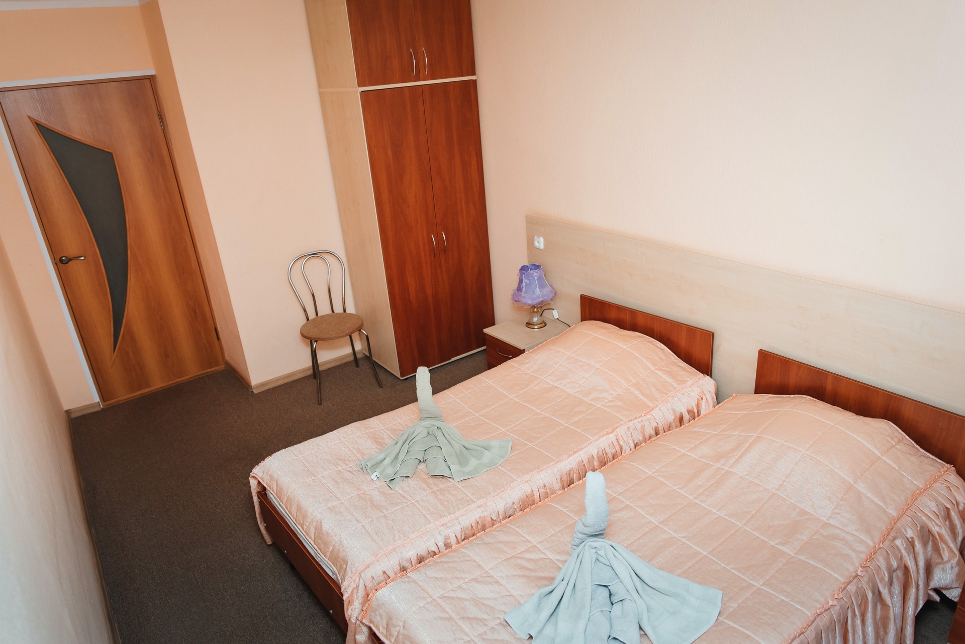 - 2-х местный однокомнатный улучшенный номер: В номере две односпальные кровати, ТВ, холодильник, чайник, душ, туалет, умывальник.