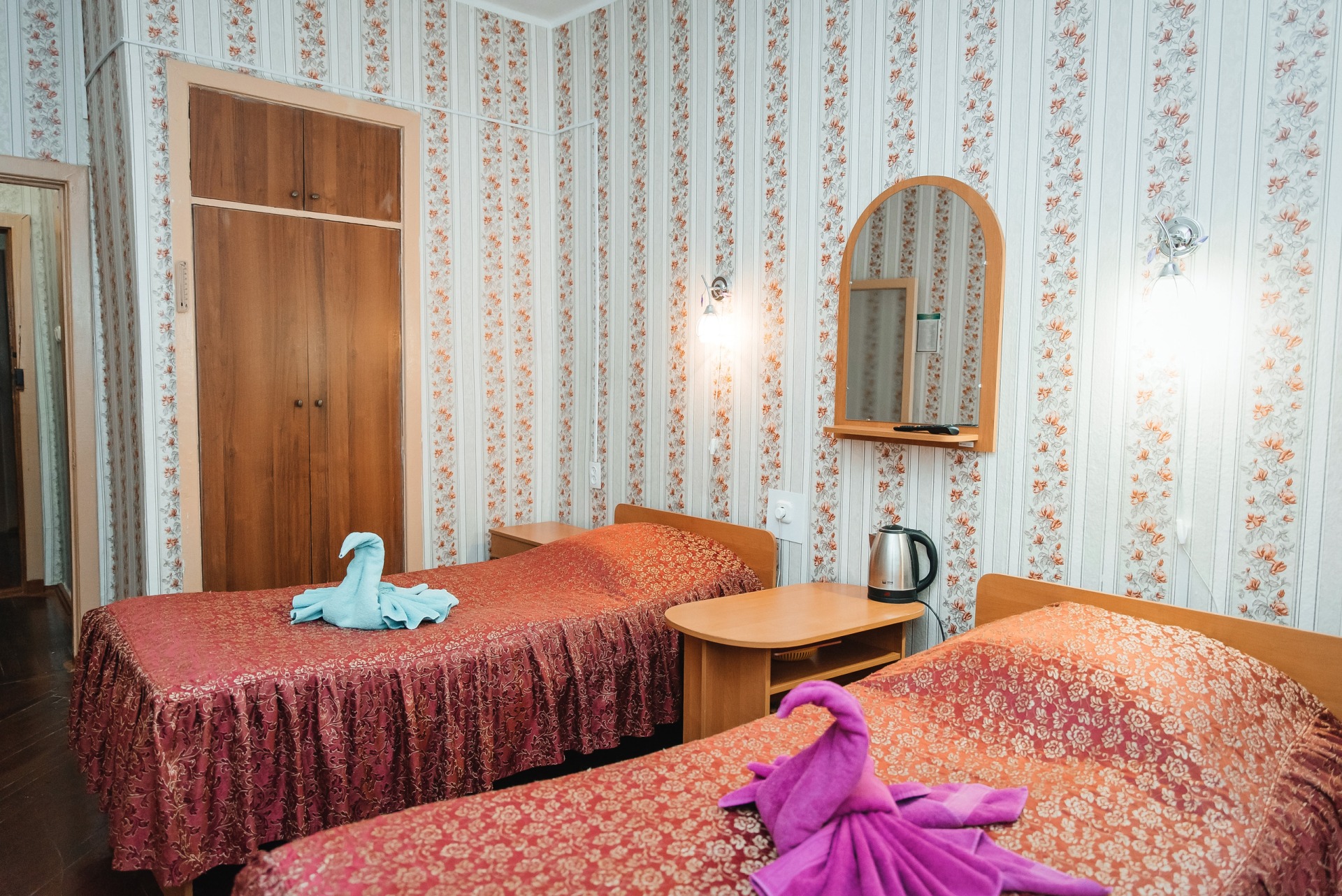 - 2-х местный / 3-х местный номер расположенный в лечебном корпусе (санузел и душ расположен на этаже), в номере есть одноместные кровати, ТВ, холодильник, чайник.