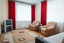 - 2-х местный 3-х комнатный категории «Люкс» В номере 2-х спальная кровать, в гостиной мягкая мебель, ТВ, холодильник, чайник, душ, туалет, умывальник, небольшая кухня.