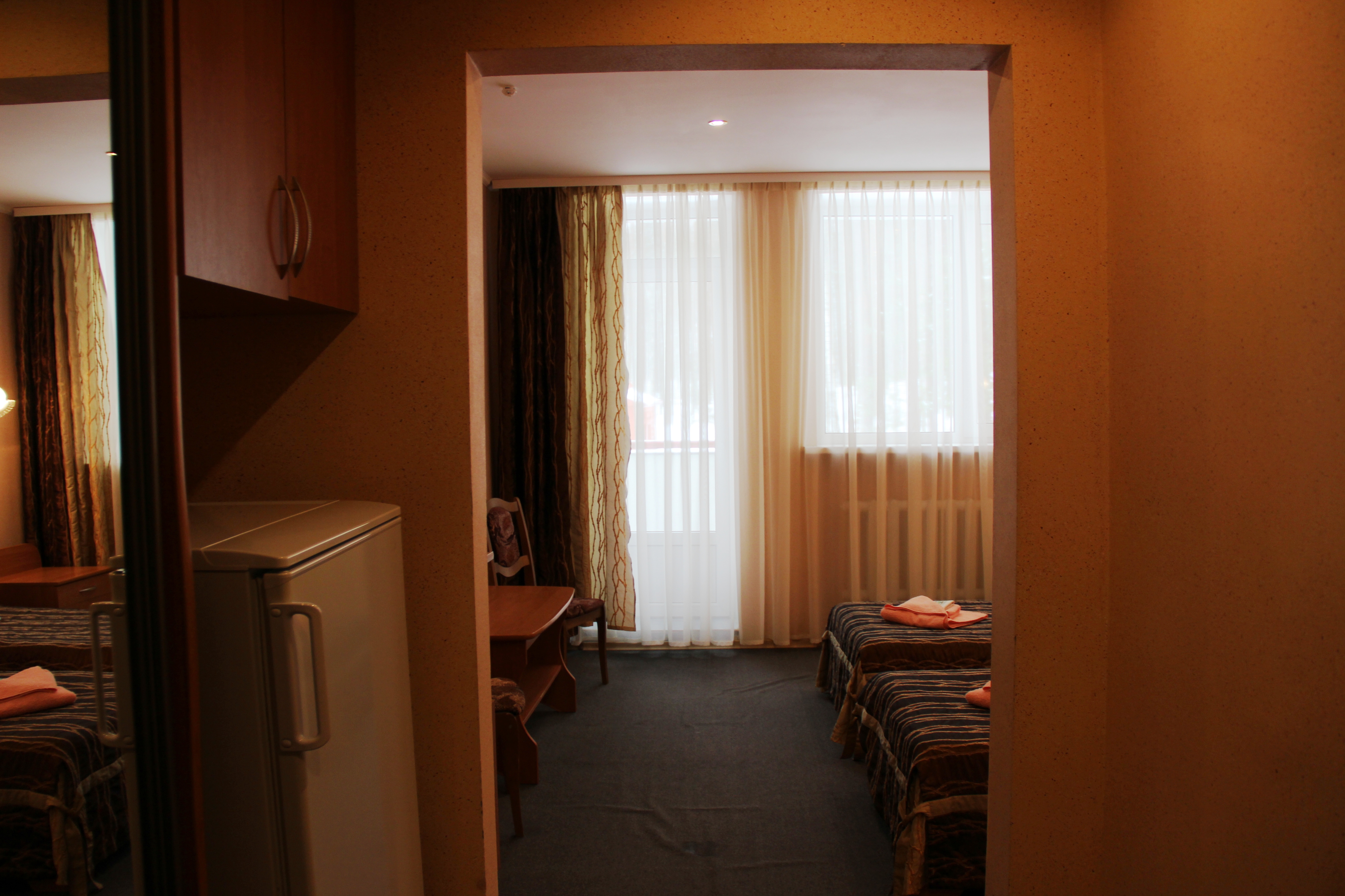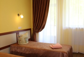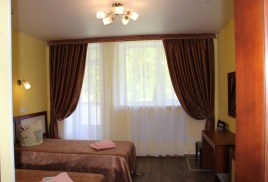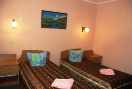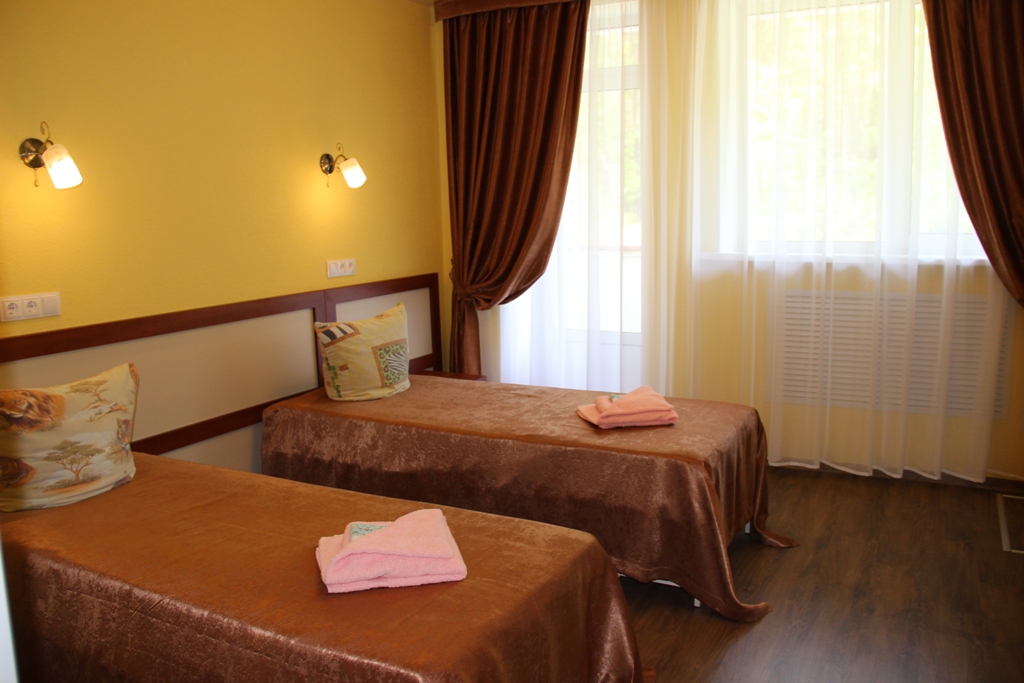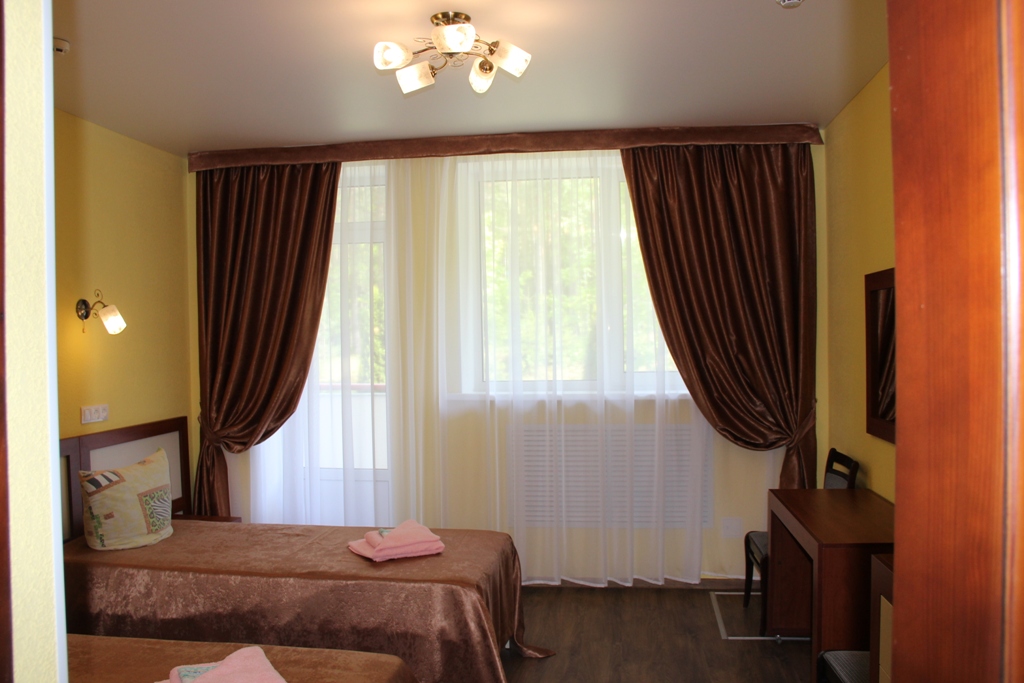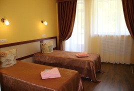 2-х местный "твин" представляет собой двухместный однокомнатный номер в главном корпусе с двумя раздельными кроватями и зоной отдыха. Для комфортного размещения в номере также присутствует прихожая и санузел. Также возможна организация дополнительного спального места (размещение на еврораскладушке). Площадь номера: 27 м2. 1, 4, 5, 6 этаж в главном корпусе. Бесплатный wi-fi в холле 1, 2 этажей. В номере есть: Телевизор,холодильник, электрочайник, набор посуды, сушилка для белья, Утюг и гладильная доска, балкон, бесплатный wi-fi, санузел, фен