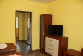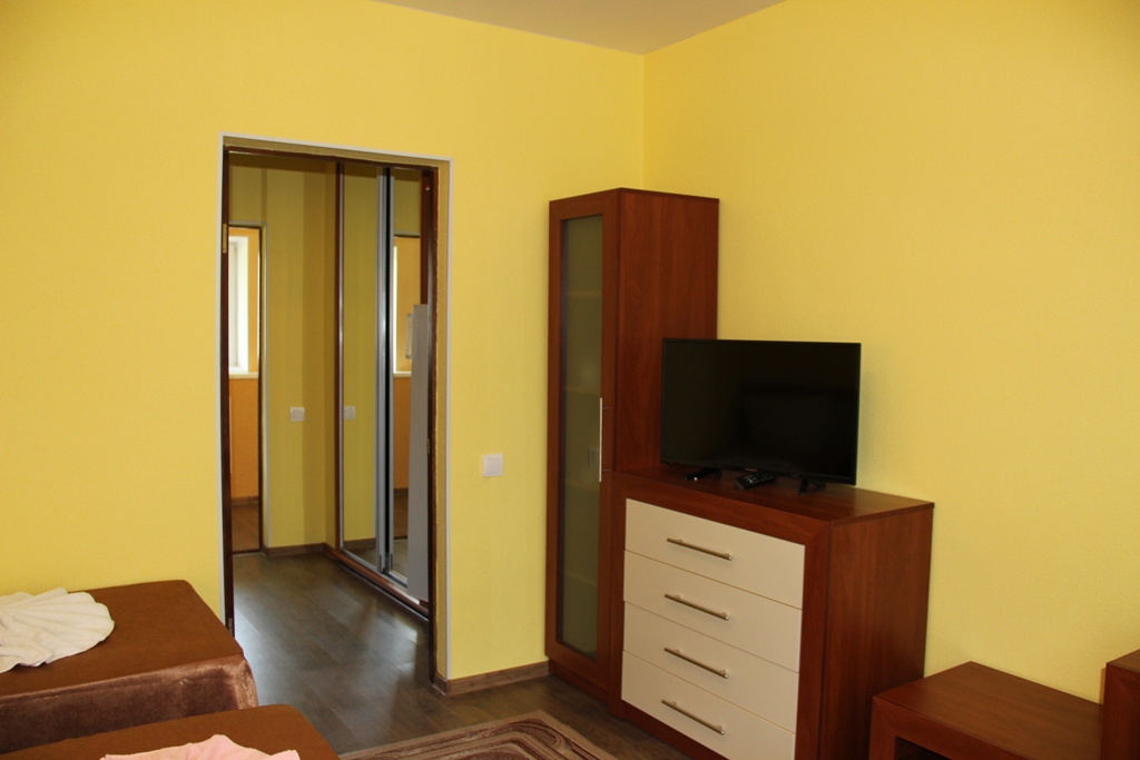 2-х местный "Студия" однокомнатный номер с просторной кроватью и зоной отдыха. Для комфортного размещения в номере также присутствует прихожая и санузел. Бесплатный wi-fi в холле 1, 2 этажей. В номере есть: Телевизор,холодильник, электрочайник, набор посуды, сушилка для белья, Утюг и гладильная доска, балкон, бесплатный wi-fi, санузел, фен