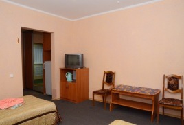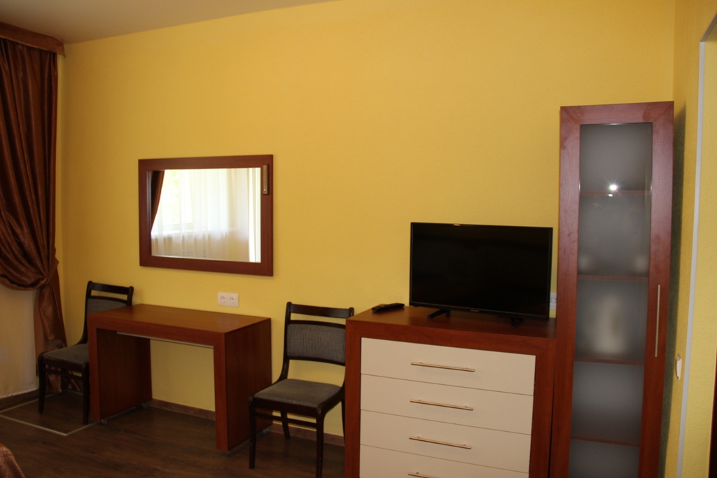 Номерной фонд: Главный корпус - 6 этажей ( в корпусе сделан евроремонт),есть лифт, соединен теплым переходом со столовой и лечебным корпусом, лечебный корпус 4-е этажа. Корпус - А, отдельно стоящий 2-х этажный ( в корпусе сделан косметический ремонт). В каждом номере, независимо от категории, имеется санузел, телевизор, холодильник, утюг, гладильная доска, сушилка для белья, набор посуды.