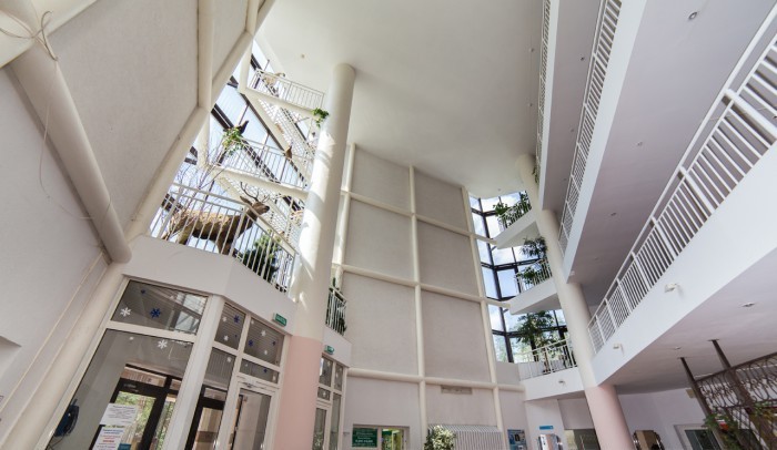 Размещение: 3 спальных корпуса, столовая, лечебный корпус. Корпус №1 и водолечебница соединены переходом, так же есть в данных корпусах лифты. 2 и 3 корпуса отдельно стоящие без лифта