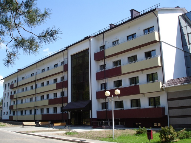 Корпус №2 - 4-х этажный, без лифта, без теплых переходов Корпус стал четырехэтажным (появился мансардный этаж). Теперь в нём 58 одноместных номеров. В 50 номерах могут разместиться 2 человека (например супруги или мать с ребенком), так как номера оснащены двуспальными кроватями.